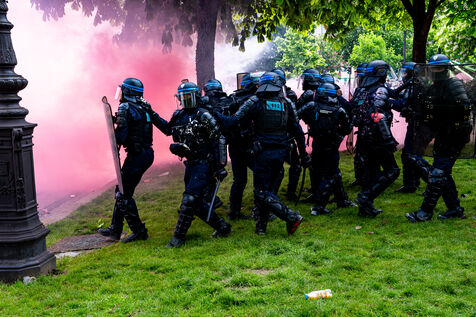 Manifestation du 1er Mai 2022 à Paris, journée internationale de lutte des travailleurs et travailleuses.