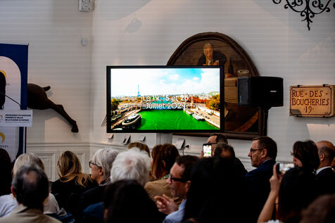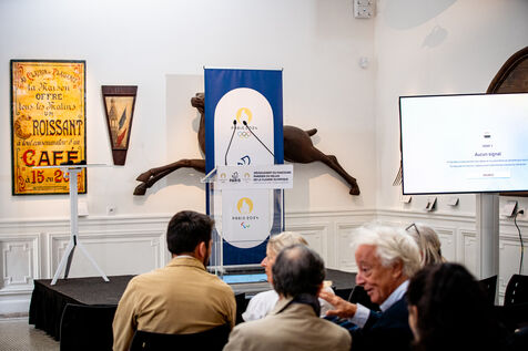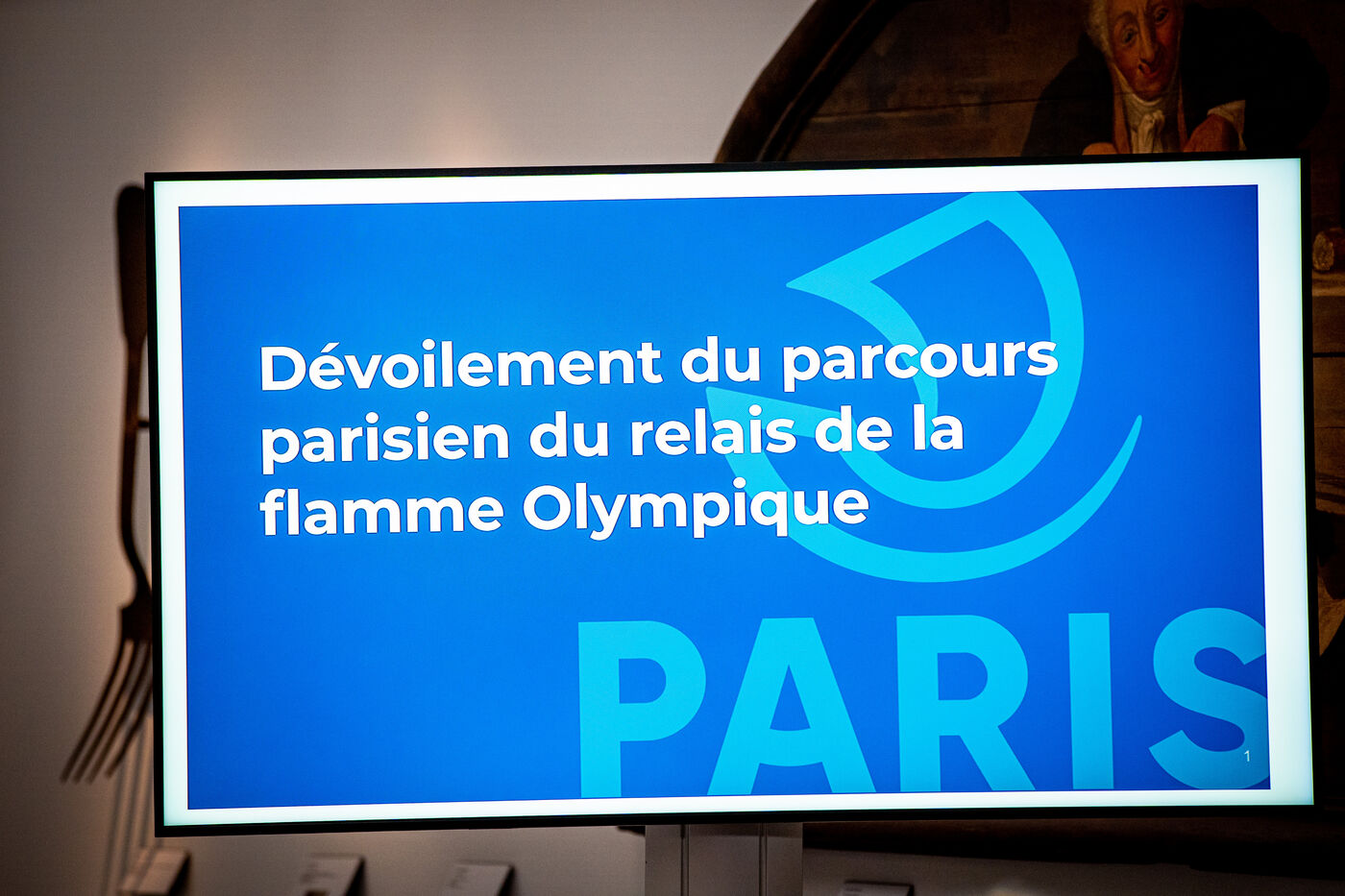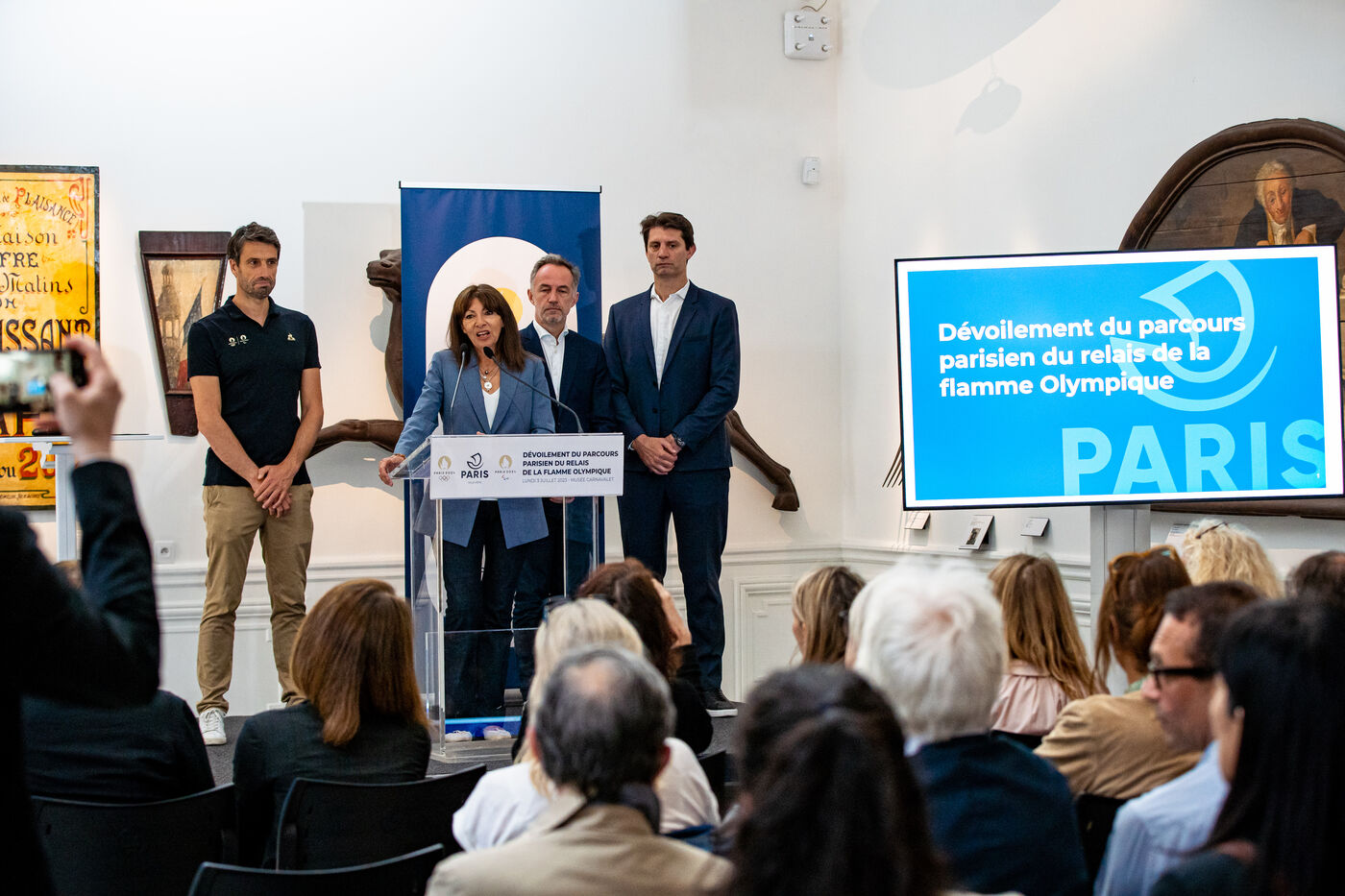 Paris Mayor Anne Hidalgo unveiled the Parisian route of the Olympic Flame in the emblematic Musée Carnavalet, located in the heart of the Marais district, in the presence of Tony Estanguet, President of the Organizing Committee for the Olympic and Paralympic Games, and deputy mayors Emmanuel Grégoire and Pierre Rabadan. Monday 03 July 2023.