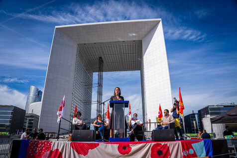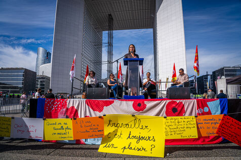 Meeting de Sophie Binet devant la Grande Arche de la Défense - CGT - Puteaux - 26/09/2023