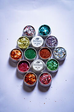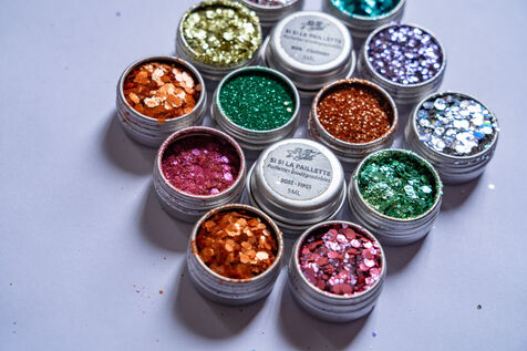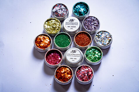 Illustration of the European Commission's decision to ban the use of loose glitter in household, medical and cosmetic products. The European Union has decided to remove all microplastics from products for the good of the planet, under the EU's chemicals regulation (REACH), in particular to limit pollution in the oceans due to the release of these microplastics. There are eco-friendly alternatives, however, such as the cosmetics brand "Si Si la paillette", which markets so-called biodegradable loose glitter, created from cellulose nanocrystals found in plants. Paris, October 12 2023.