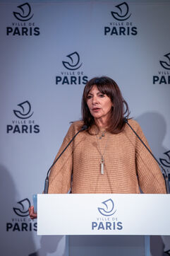 The City of Paris unveils details of the citizens' vote on the place of SUVs in Paris, scheduled for February 4, 2024. Press conference with the Mayor of Paris and deputy mayors at City Hall. The question asked will be : For or against the creation of a specific rate for parking heavy, bulky and polluting individual cars (social justice, pollution control...). Friday December 8, 2023.
