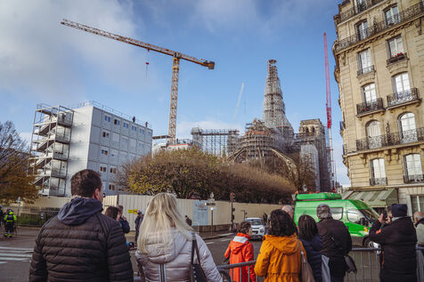 A large number of police officers and security forces, with deserted streets and blocked traffic, were on hand around Notre-Dame Cathedral in Paris for the visit of French President Emmanuel Macron. The President of the Republic has come to see the progress of work on the cathedral's reconstruction site, in particular the spire and roof structure that burned in the fire. One year before the building is due to reopen to the public on December 8, 2024.