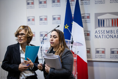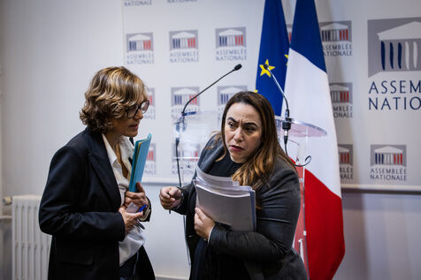 Presentation by Mrs. Béatrice Bellamy (Vendée, HOR), president, and Mrs. Sabrina Sebaihi (Hauts-de-Seine, Écolo-NUPES), rapporteur, of the conclusions of the commission of inquiry into the identification of operational failures within French sports federations, the sports movement and sports governance bodies in their capacity as public service delegates. The report denounces sexist and sexual violence in sport, the omerta, and the self-interests of sports federations, and targets the Ministry of Sport's Signal-sports platform. Platform of the Balance ton sport commission. Parliamentary group press conference in the National Assembly press conference room. Tuesday, January 23, 2024.