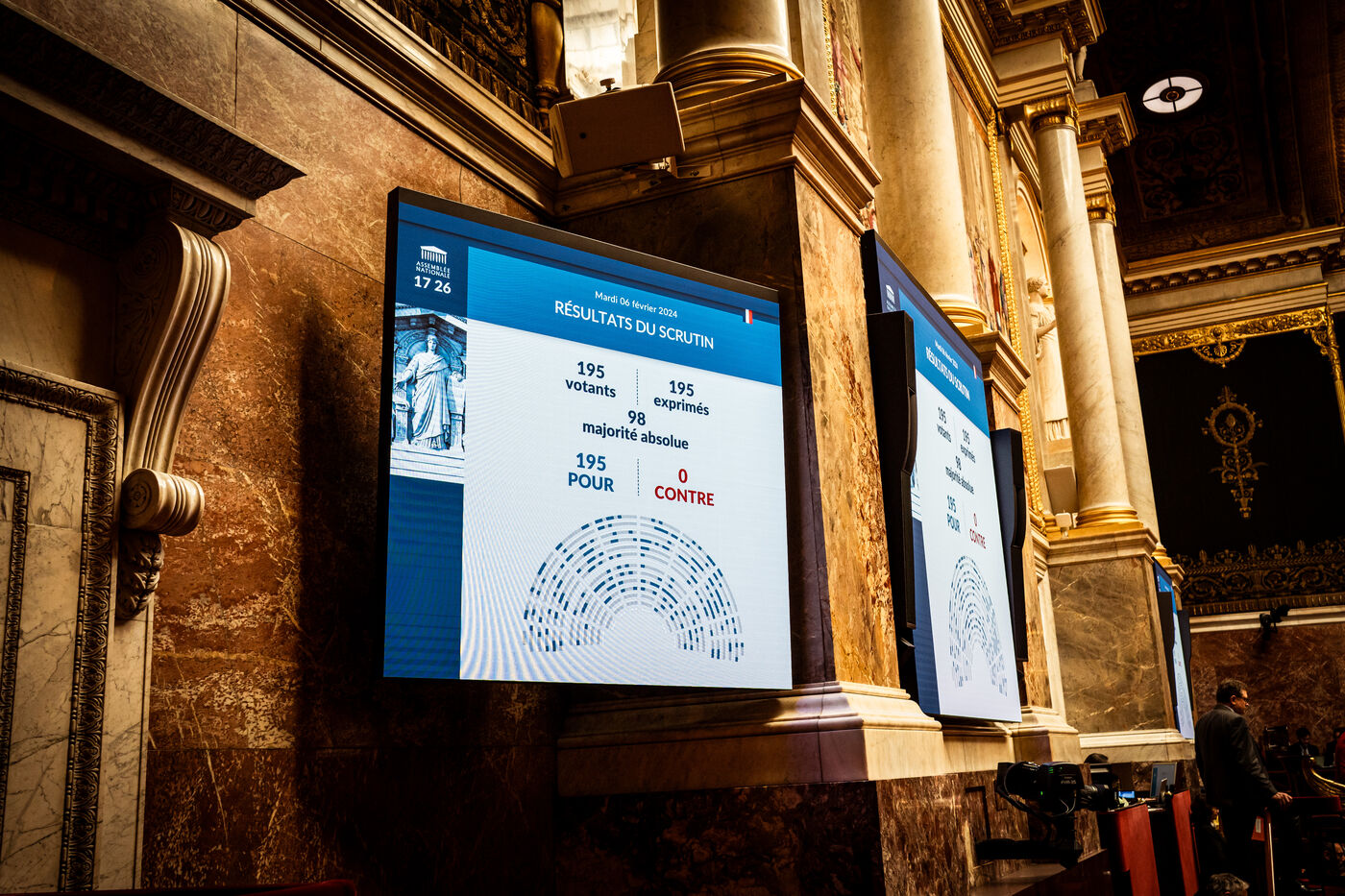 French National Assembly, Public session of Tuesday February 06, 2024. Adoption, in final reading, of a bill to guarantee respect for children's image rights. The Assembly adopted the PPL unanimously. Protecting children, amending the penal code against the dissemination of child pornography photos and content.