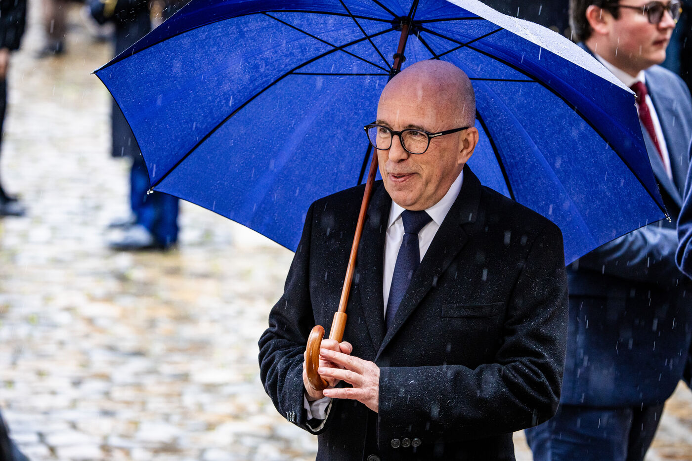 Ceremony of national homage to the French victims of the October 7th terrorist attacks in Israel, civilians killed by the Palestinian terrorist group Hamas. Israeli-Palestinian conflict. Ceremony presided over by the President of the French Republic in the Cour d'Honneur of the Hôtel National des Invalides. Wednesday, February 7, 2024.