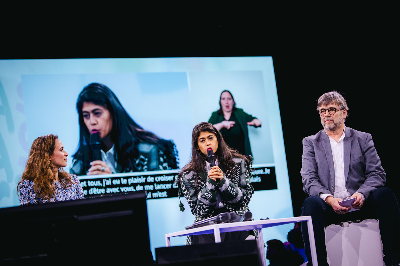 Popular Union convention, meeting to present the list of candidates and launch the European election campaign for the left-wing political party La France Insoumise (LFI) at the Exhibition Center Paris Nord Villepinte on March 16, 2024.