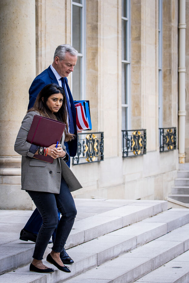 Les ministres quittent le palais presidentiel de l'Elysee apres la reunion hebdomadaire du conseil des ministres a Paris, France le 24 avril 2024. Le conseil des ministres est une reunion de travail entre les membres du gouvernement francais.