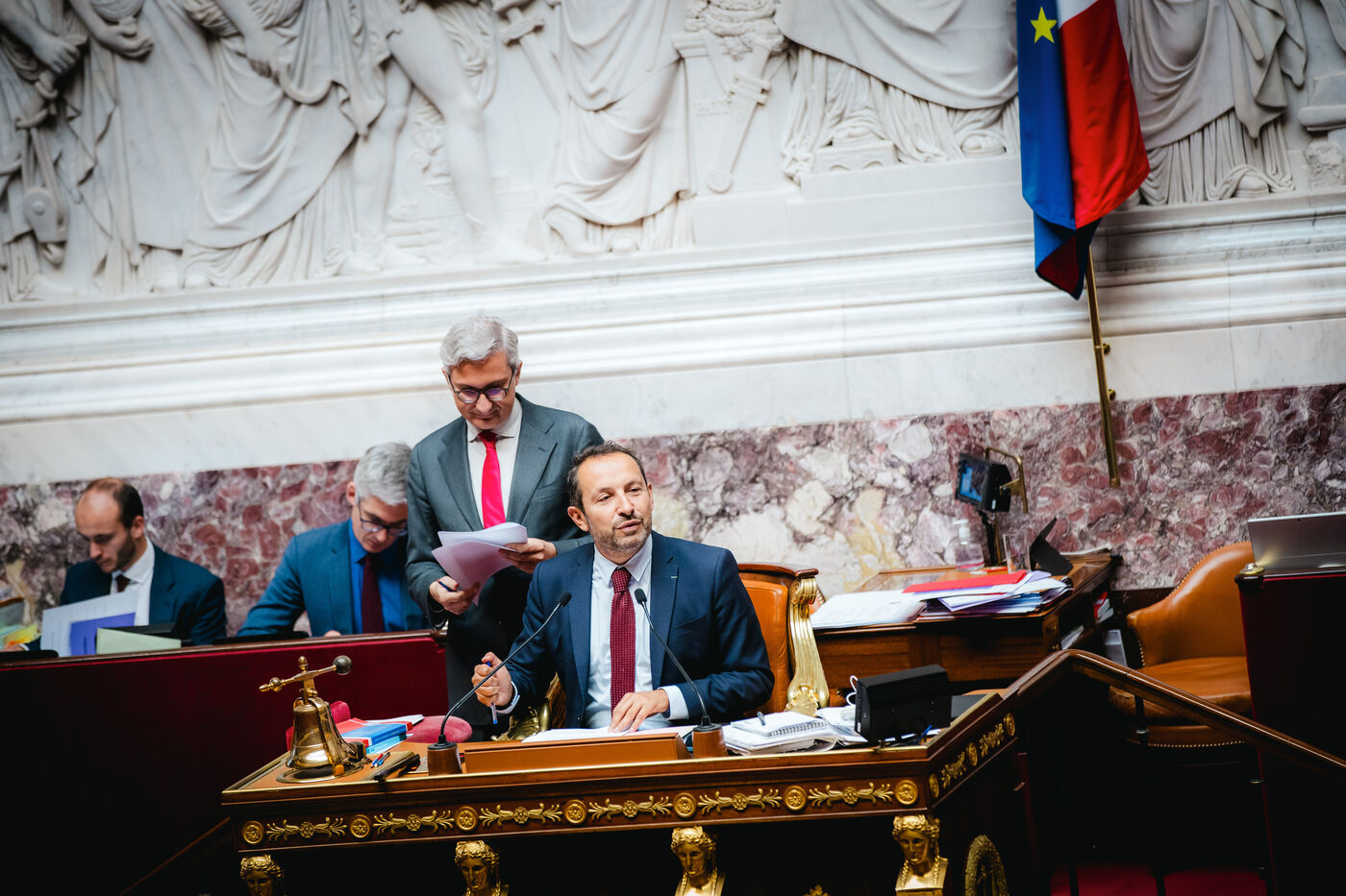 Discussion in public session of the draft law on agricultural sovereignty and the renewal of generations in agriculture in the hemicycle of the National Assembly in Paris, France on May 22, 2024. MPs debate the new agricultural policy law (LOA).
