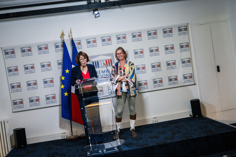 Press conference to mark the presentation by the rapporteurs, Soumya Bourouaha (Communist, Democratic and Republican Left, Left Opposition) and Virginie Lanlo (Renaissance, Presidential Majority), of the conclusions of the flash mission on the role of school medicine in combating bullying at the National Assembly in Paris, France on May 29, 2024.