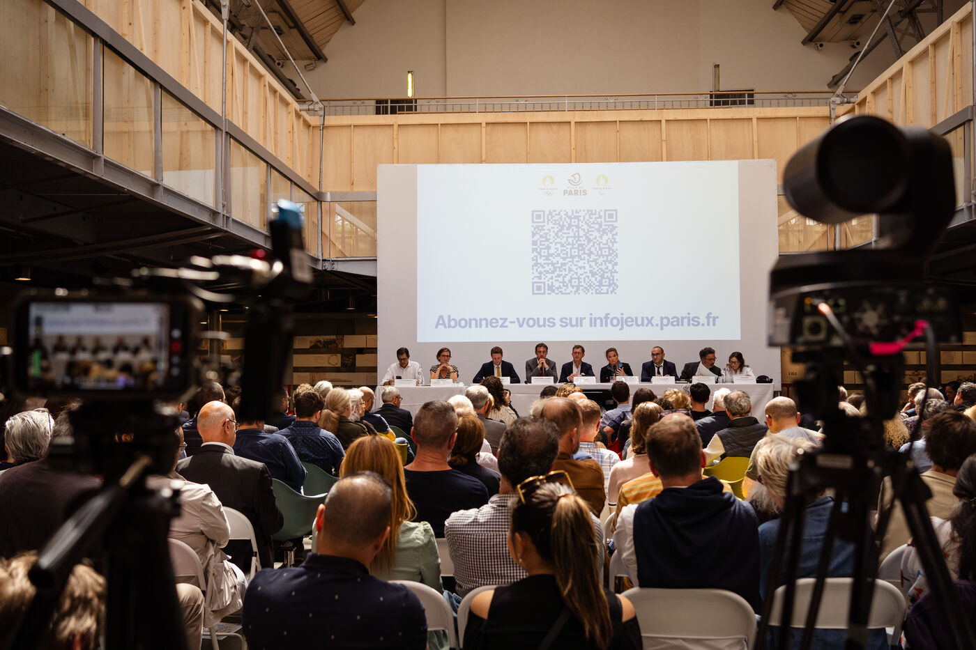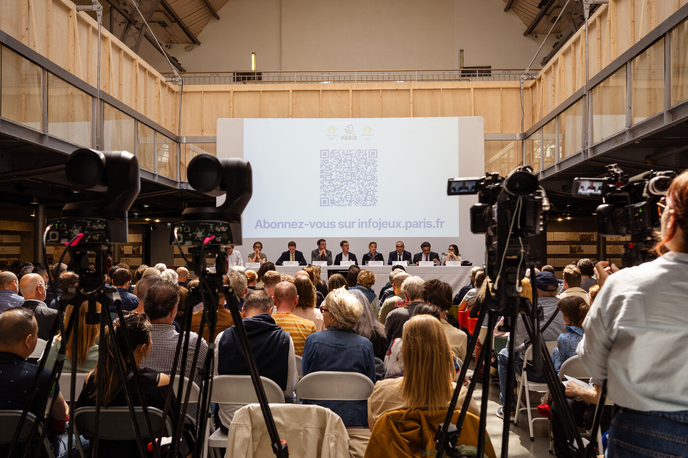 Public meeting on security measures (QR code, no-entry zones around Olympic venues and along the Seine for the opening ceremony) for the JOP 2024 Olympic and Paralympic Games at the Arsenal Pavilion in Paris, France on June 07, 2024. The event was attended by elected officials from the city of Paris, members of the Olympic organizing committee COJOP, members of the French government, Parisian retailers and representatives of trade federations and the tourism industry (reservation required for customers of retailers, restaurants and hotels).