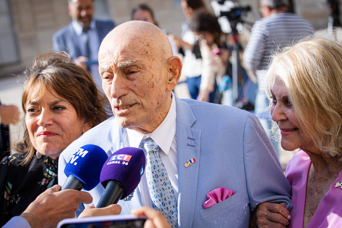 Guests arrive to attend an official state dinner as part of US President's state visit to France, at the Presidential Elysee Palace in Paris on June 8, 2024. The red carpet was rolled out for the arrival of the VIP guests, stars and politicians.