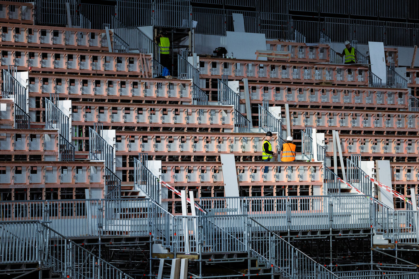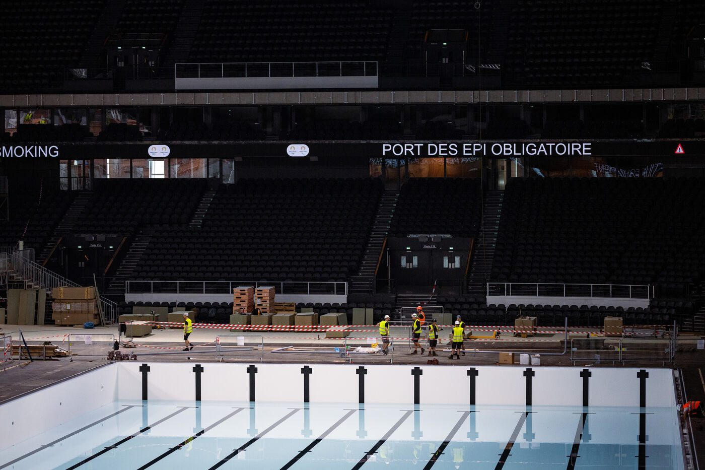 Chantier de transformation de la salle de concert La Defense Arena en piscine olympique - JO PARIS 2024 - Nanterre - 12 juin 2024