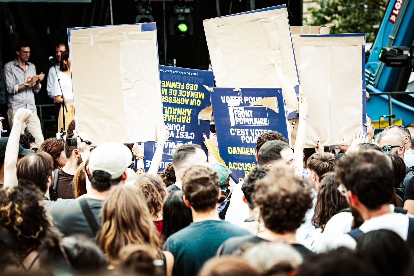 Meeting 'Freedom! Against the Extreme Right, Let's Hope' a few days before the first round of early legislative elections in Paris, France on June 27, 2024. New Popular Front of the Left, a hundred or so media, associations and trade unions united to defend freedoms against the Rassemblement National in the form of speeches, concerts and dj sets.