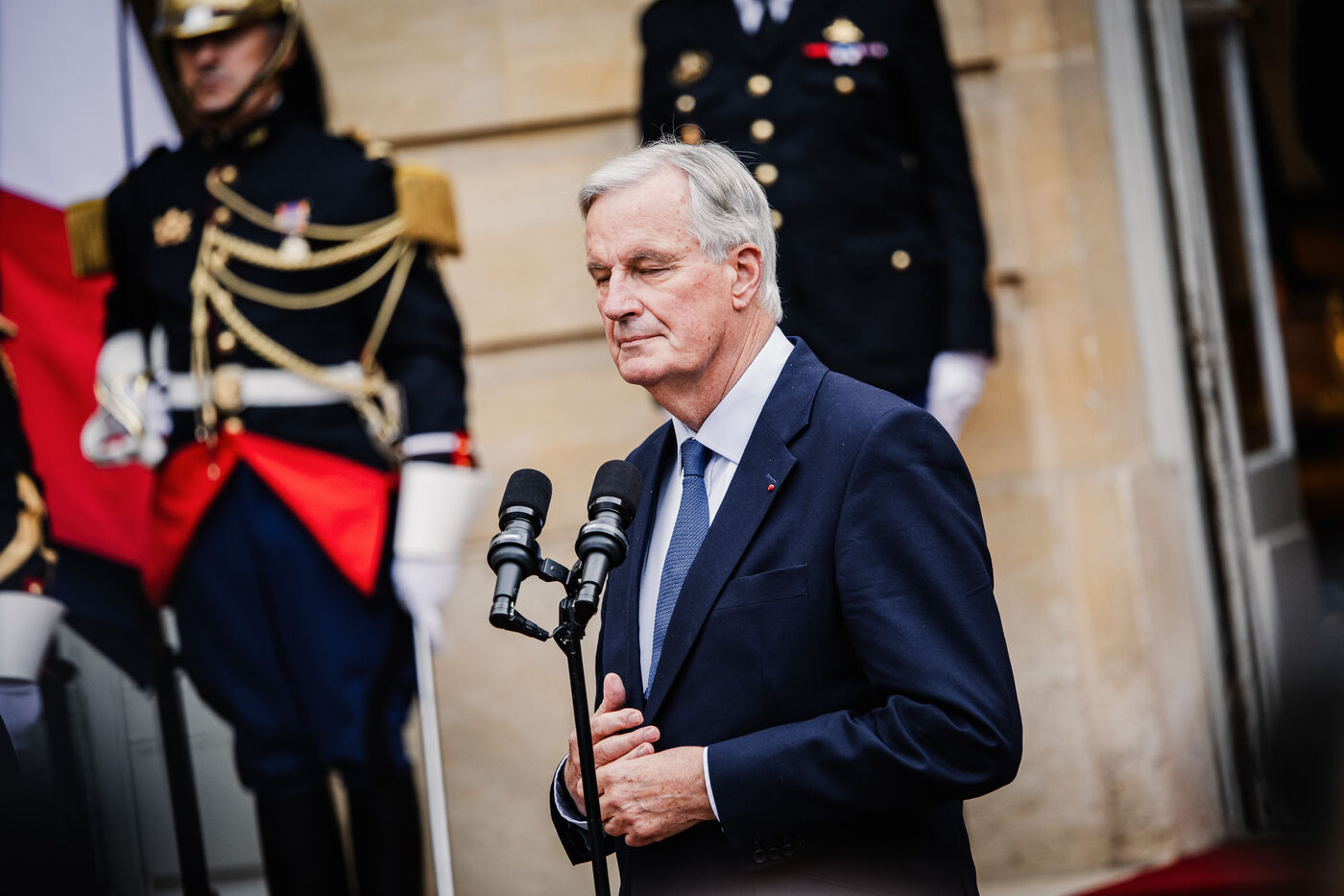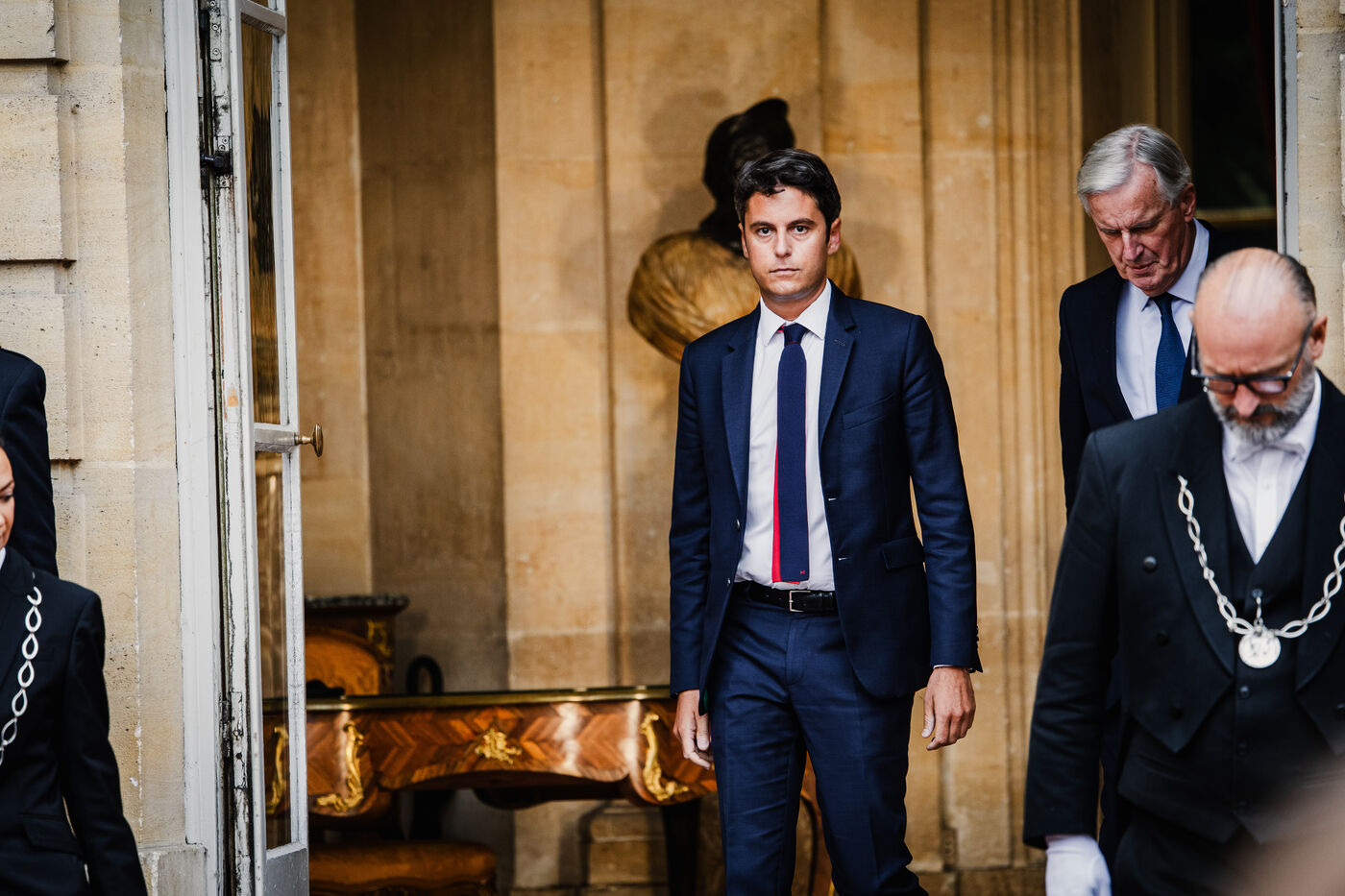 Ceremonie de passation de pouvoirs entre le premier ministre Gabriel Attal et Michel Barnier - Paris - 5 Septembre 2024