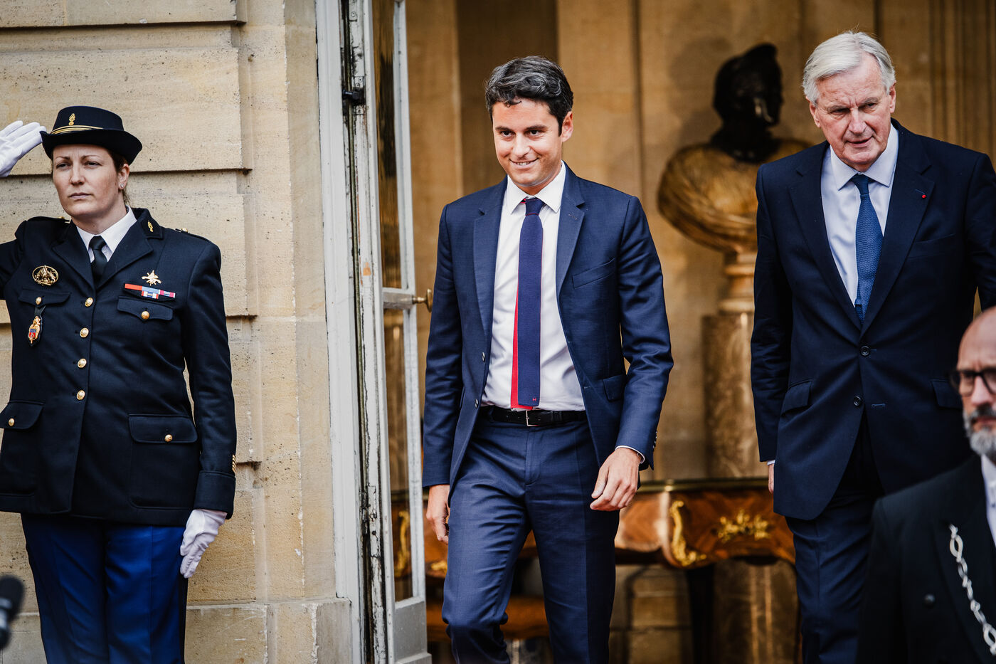 Handover ceremony between France's Prime Minister Gabriel Attal and Michel Barnier - Paris - September 5, 2024