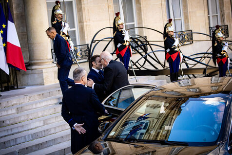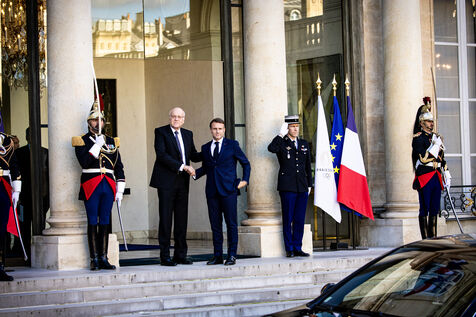 France's President Emmanuel Macron receives Lebanon's Prime Minister Najib MIKATI before their bilateral meeting at the Elysee Palace in Paris, France on October 23, 2024. Context of war between Lebanon and Israel, extension of the Israeli-Palestinian conflict.