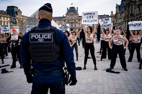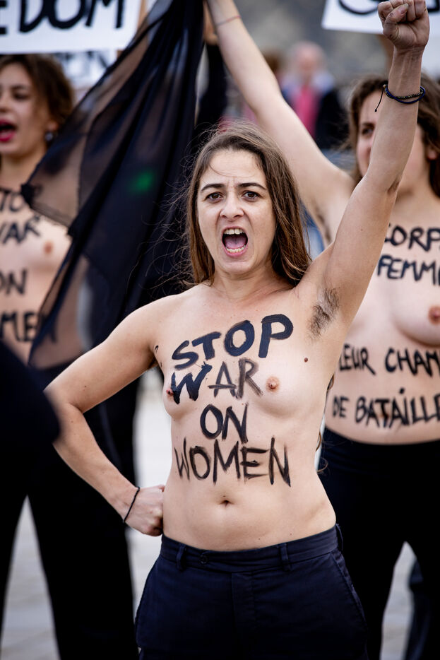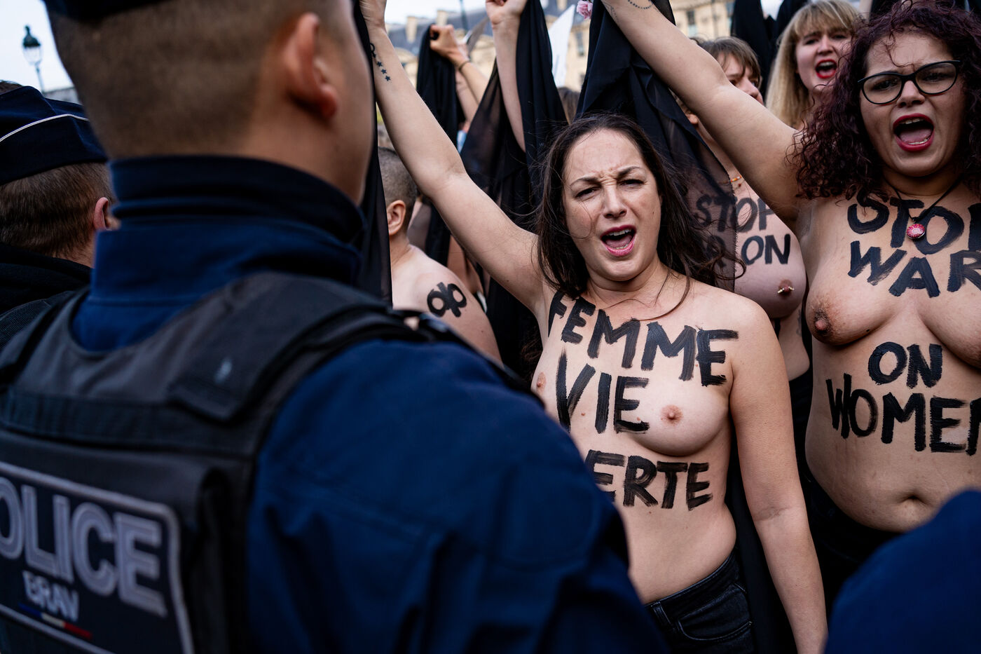 Major action by FEMEN activists against violence against women - Paris - November 24, 2024