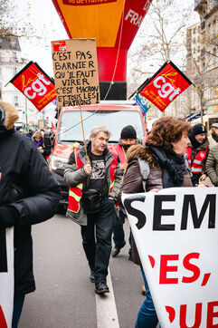 Demonstration on the occasion of a national strike and mobilisation day called by several public service unions, railway workers (rail unions) and industrial workers (following the numerous redundancy plans and factory closures) in Paris, France on December 12, 2024.