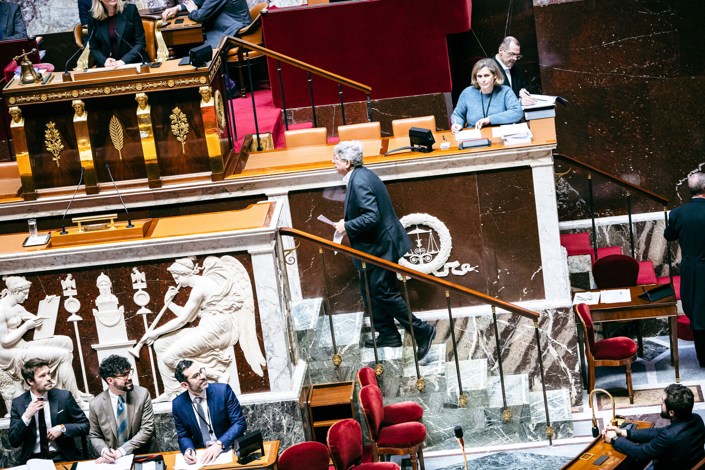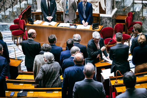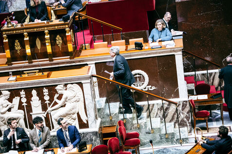 Examination of the conclusions of the joint committee on the draft finance bill for 2025 (PLF 2025, budget) in the hemicycle of the National Assembly in Paris, France on February 3, 2025. The Government, through the Prime Minister, has engaged its responsibility, in application of article 49, paragraph 3 (49.3), of the Constitution, a motion of censure tabled by La France Insoumise (left-wing opposition).