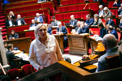 Examination of the Social Security Financing Bill for 2025 (PLFSS 2025, budget) in the hemicycle of the National Assembly in Paris, France on February 3, 2025. The Government, through the Prime Minister, has committed its responsibility, in application of Article 49, paragraph 3 (49.3), of the Constitution, a motion of censure tabled by La France Insoumise (left-wing opposition).