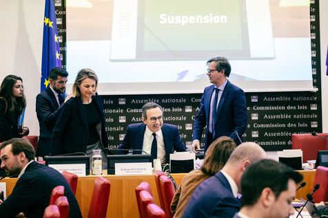 Hearing of France's Minister of State, Minister of the Interior Bruno Retailleau, and France's Minister of Labour, Health, Solidarity and the Family, responsible for Labour and Employment Astrid Panosyan-Bouvet, on the circular of 23 January 2025 setting out the general guidelines for the exceptional admission to residence provided for in articles L.435-1 and following of the Code on the Entry and Residence of Foreigners and the Right of Asylum and on regularisations justified by work (immigration, immigrant workers) by members of the Law Commission of the French National Assembly in Paris, France on February 12, 2025.