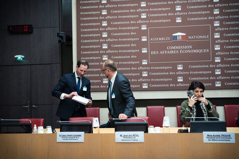 Hearing of Jean-Luc Beal, Chairman of Vencorex France, and Fabien Tayart de Borms, Associate Director of AlixPartners (analysis and business consultancy firm), on the economic situation and development prospects of Vencorex's activities in France, by members of the Economic Affairs Committee at the National Assembly in Paris, France, on March 18, 2025. The Isere-based company is in receivership and is in danger of being wound up (job losses, redundancy plan).
