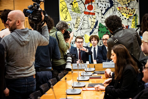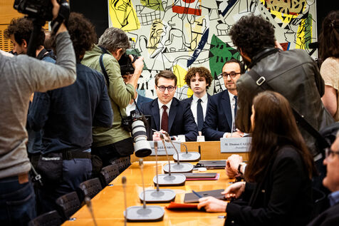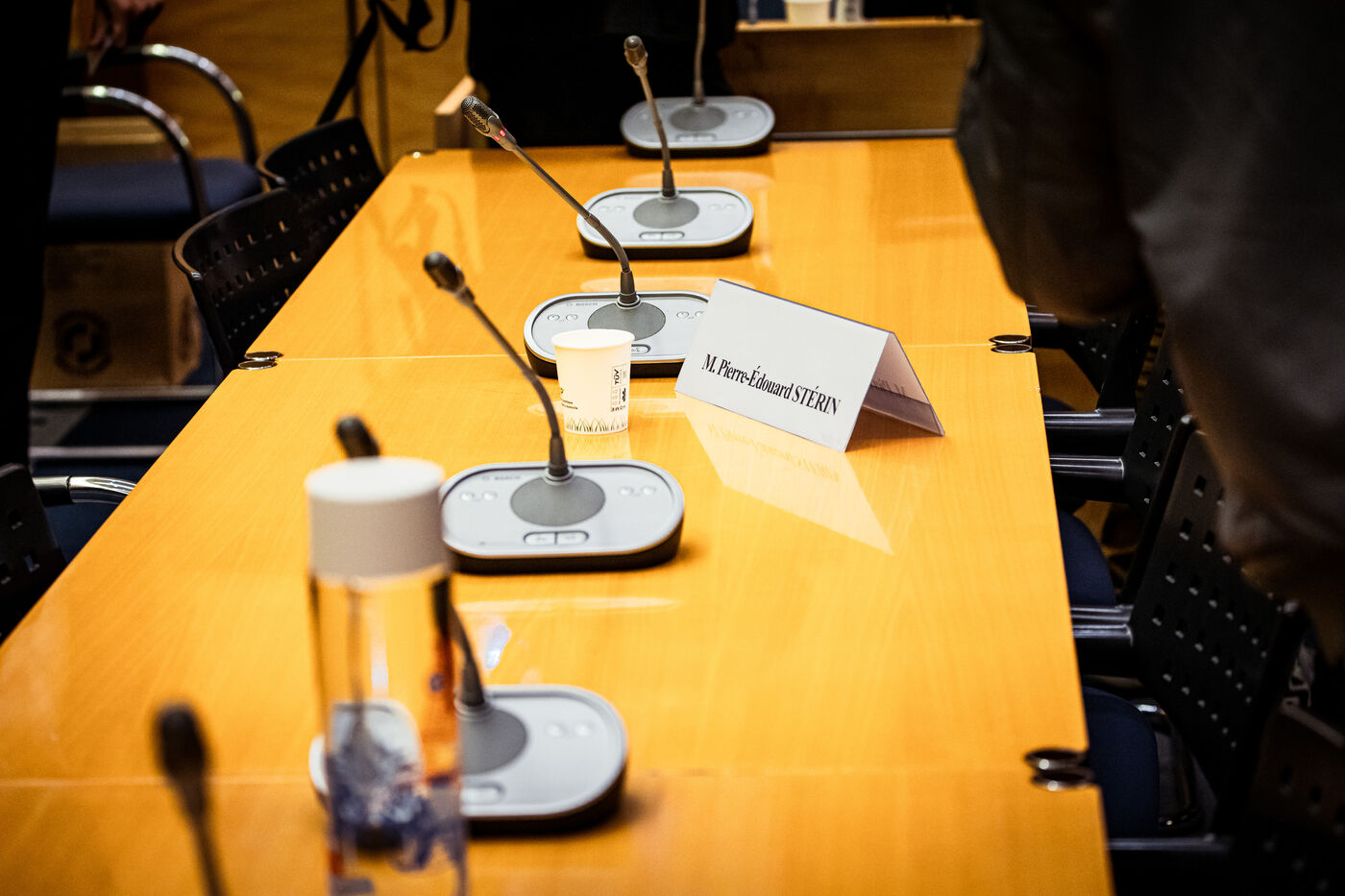 Hearing of Pierre-Edouard Sterin, French entrepreneur and billionaire, traditional Catholic, close to the right and extreme right, by the deputies of the committee of enquiry into the organisation of elections in France at the National Assembly in Paris, France on May 14, 2025. As Pierre-Edouard Sterin did not appear, the hearing did not take place and was rescheduled.