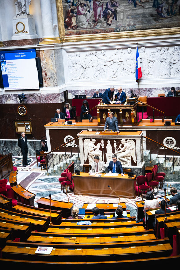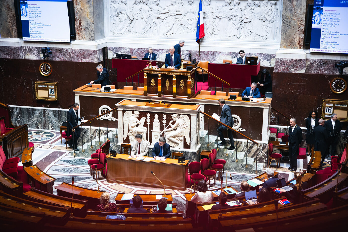 Examination of the bill on national energy and climate programming for the years 2025 to 2035 by the deputies present in the hemicycle of the National Assembly in Paris, France on June 16, 2025. Text examined and adopted by the Economic Affairs Committee.