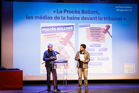 Event: ‘The Bollore Trial: Hate Media in Court,’ a symbolic mock trial organised by Le Fonds pour une Presse Libre (Fund for a Free Press, promoting a free and independent press), in the form of a public meeting at Espace Reuilly in Paris, France on September 30, 2025. Testimonies from FLP award-winning journalists on the behind-the-scenes of their investigations into the far right, its galaxy and its relays, followed by a staged court hearing based on unprecedented charges against the far-right ideas propagated by the Bollore group's media outlets (C8, CNEWS, Europe 1, Le Journal du Dimanche - JDD, etc.).