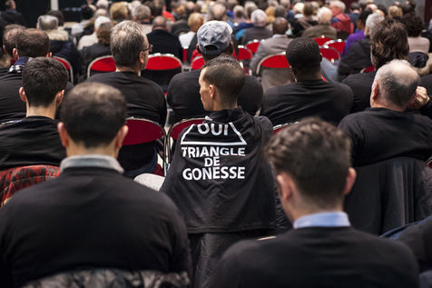 Environ 400 personnes, défenseurs et opposants au projet d'aménagement du Triangle de Gonesse (Val-d'Oise), sont venus assister à la réunion publique sur le Triangle de Gonesse, zone de 299 ha de terres agricoles, où doit s'implanter pour 2024 le controversé complexe de loisirs et de commerce EuropaCity (80 ha) ainsi qu'un immense quartier d'affaires international (128 ha) et la future gare de la ligne 17 du Grand Paris Express.