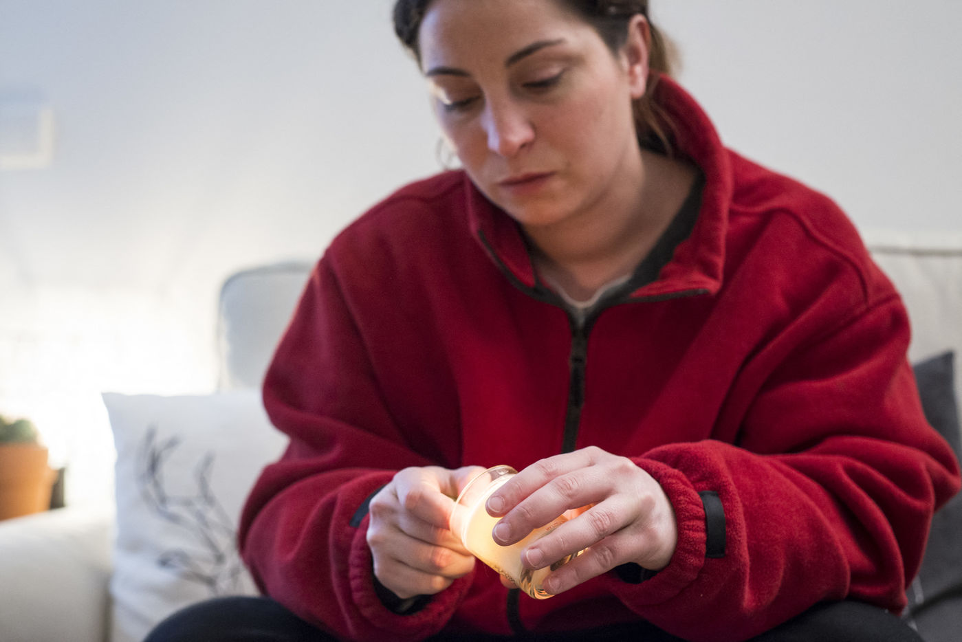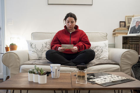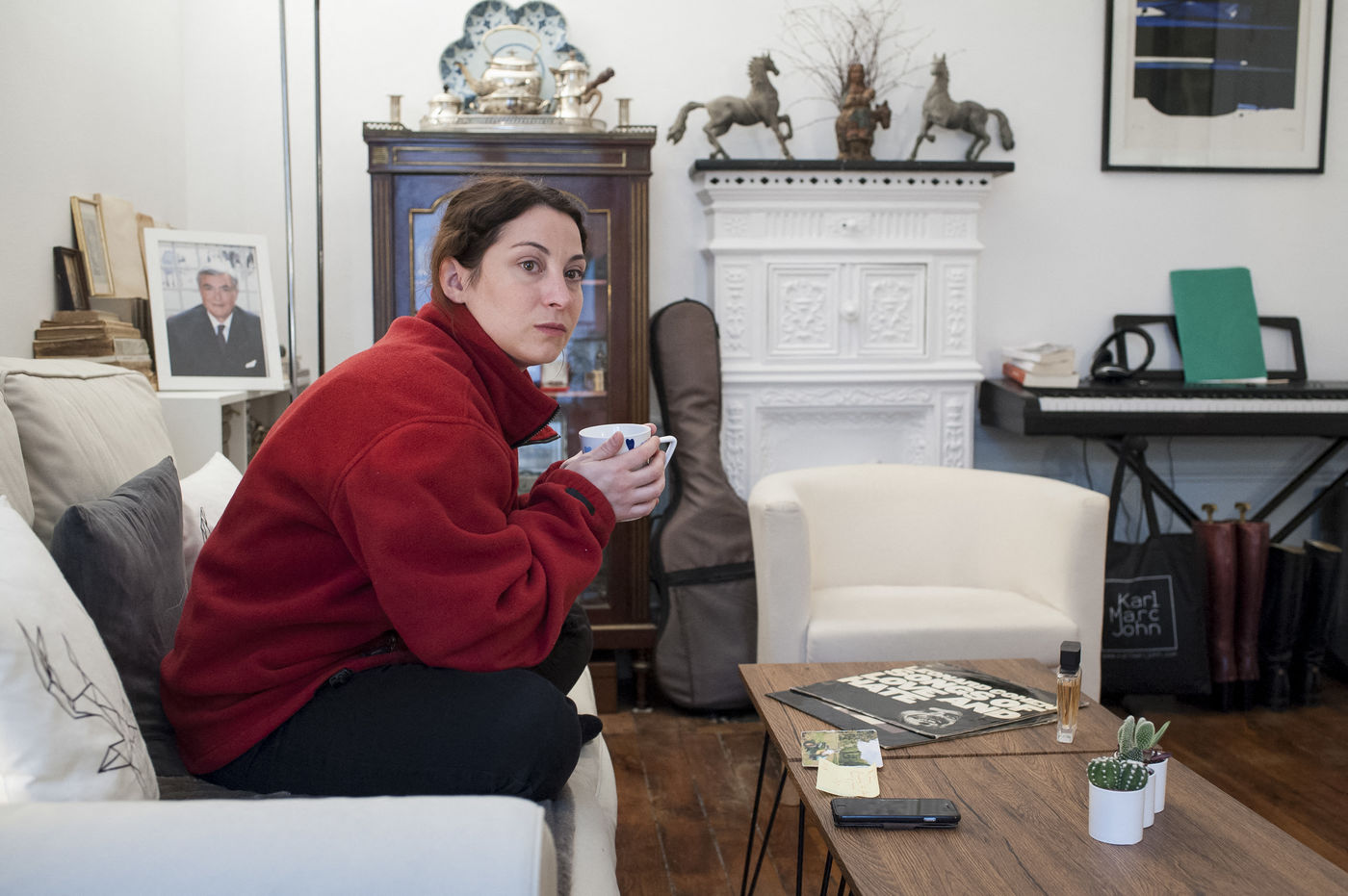 D'ailleurs, physiquement son corps lui envoie quelques signes : elle a les mains moites et les jambes qui tremblent. Son premier réflexe est d'appeler un membre de sa famille qui l'a calme tout de suite, lui dit qu'elle doit se prendre la tête pour rien, pas de panique. Mais les mains restent moites et les jambes tremblent toujours. Elle fume clope sur clope, toujours en pyjama.