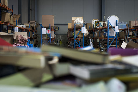 Le centre de tri d'Emmaüs Alternatives est un vaste local situé en banlieue parisienne à Montreuil.