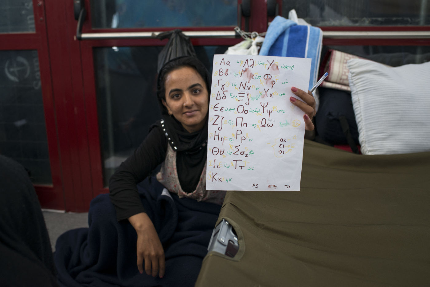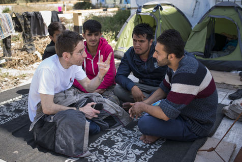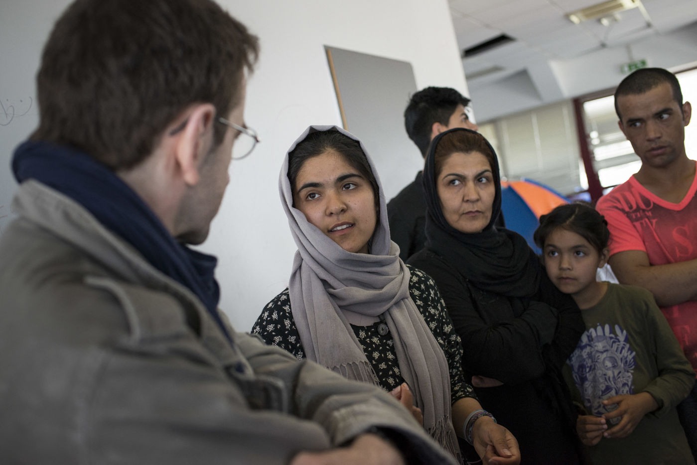 Il y a Nasser, avec sa cigarette électronique. Il a quitté son pays, l'Afghanistan, menacé par les Talibans. Après avoir traversé l'Irak, le Pakistan et la Turquie à pieds, il est monté dans un bateau pour la Grèce. Cela fait trois mois que son pays lui manque. Il y a Abdul, un ancien conseiller politique, triste de la tournure que prend son pays, et un autre afghan qui a perdu sa jambe dans une explosion. Il y a Zhana, née en Afghanistan il y a quatre mois, pays qu'elle a quitté il y a déjà deux mois avec ses parents. Il y a cette jeune femme qui apprend l'anglais et le grec avec ses copines, pour continuer à s'instruire et ne pas trop perdre son temps. Il y a Saman et sa maman qui propose leur aide à Solidarités International, Saman pourrait être traductrice, et sa maman pourrait aider aussi, d'une façon ou d'une autre disent-elles. A leur image, certains réfugiés refusent la passivité et souhaitent apporter leur soutien aux autres migrants. Beaucoup proposent leur aide pour la distribution des repas, pour nettoyer les espaces communs, pour se sentir utiles et participer à l'amélioration de leurs conditions de vie, participer et être actif, mettre leurs compétences à profit, et donner un sens à leur présence.