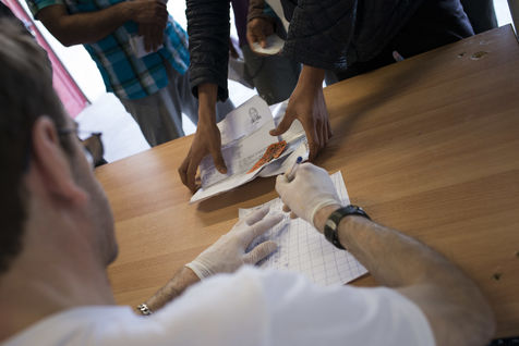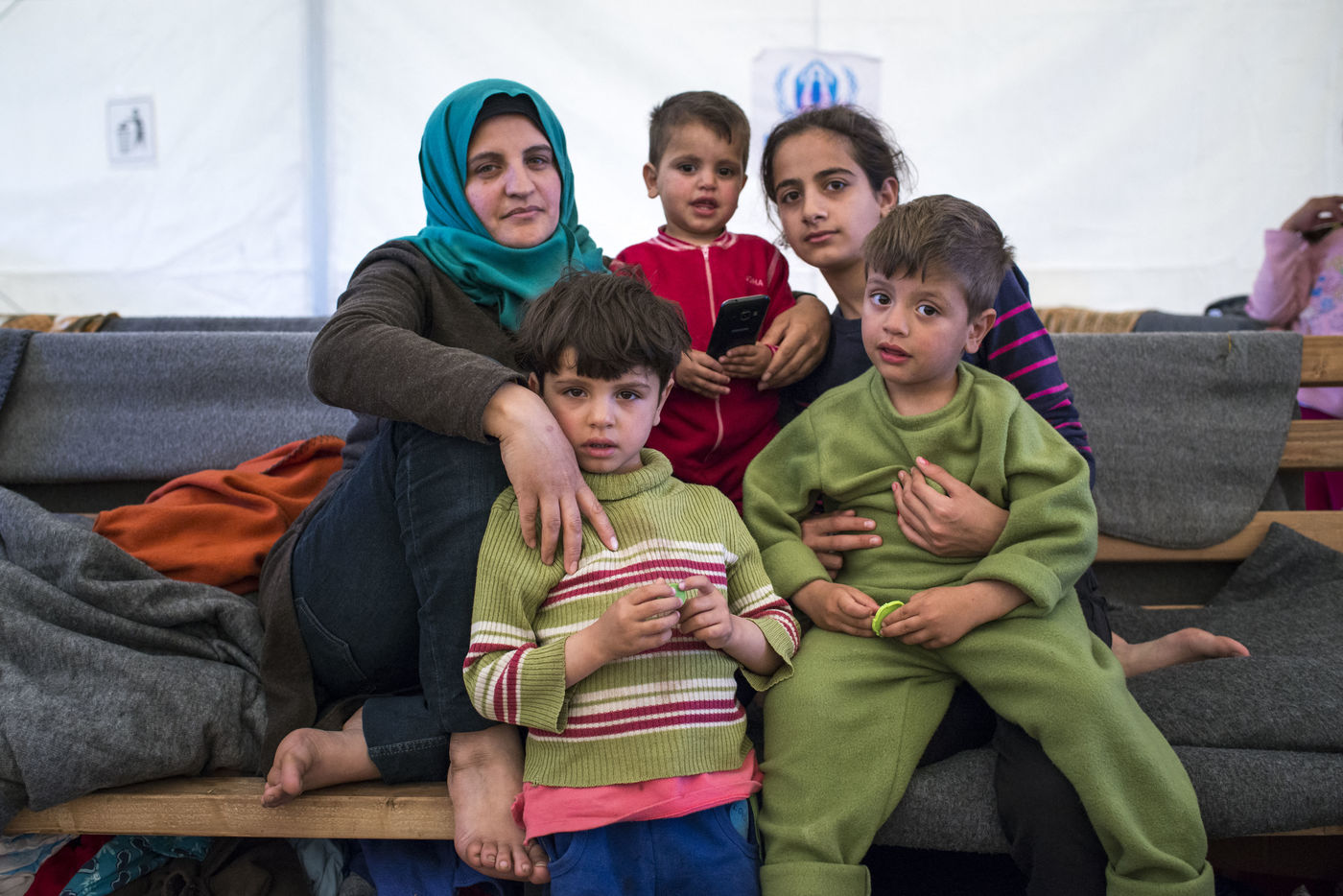 Il y a aussi Brocaïa, qui ne veut pas qu'on la prenne en photos. Avec ses deux fils de 3 et 5 ans, elle a fait la route sans son mari. Ingénieur, il travaille dans le gouvernement syrien, et il ne peut pas démissionner. Alors elle a pris les devants en espérant qu'il pourra les rejoindre en Hollande, où elle espère retrouver son frère et sa soeur. Elle nous confirme que chaque camp est unique, les conditions sanitaires, alimentaires et sécuritaires, la gestion, c'est à chaque fois différent et plus ou moins plaisant. Pour elle, qui a été dans un camp militaire grec, elle trouve que « Idomeni c'est du cinq étoiles ! Là-bas c'était très sale, on avait un seul repas par jour et par famille. Ici MSF nettoie, il y a des distributions, de vrais lits pour certains. » Si Idomeni c'est du cinq étoiles, nous n'osons imaginer les conditions dans lesquelles elles vivaient dans ce camp.