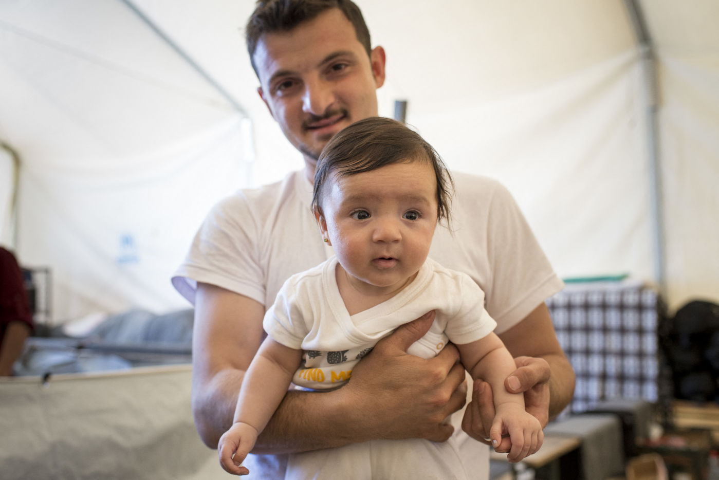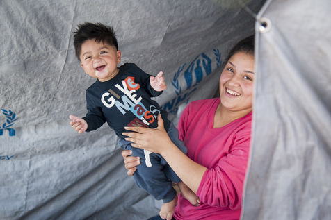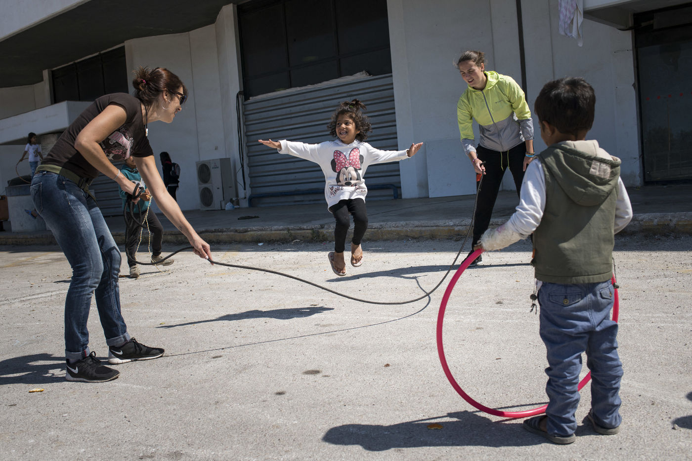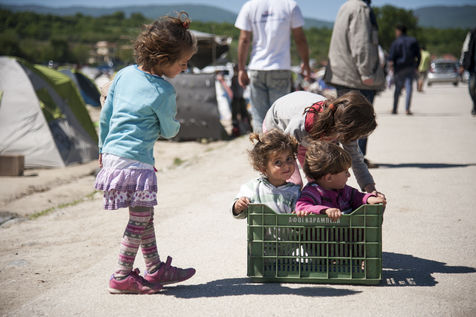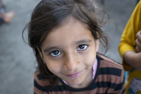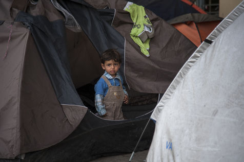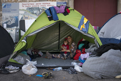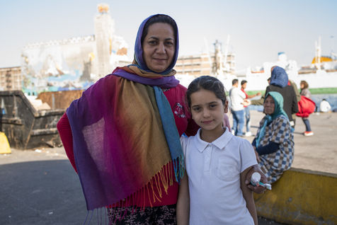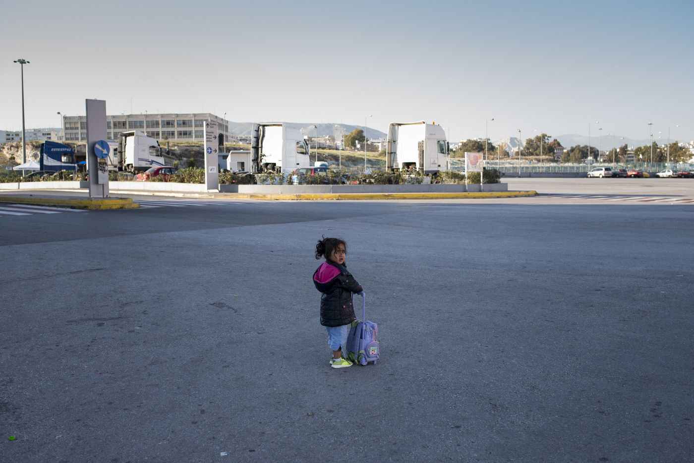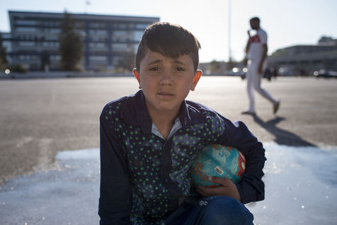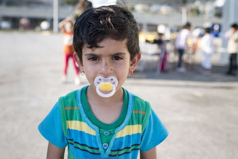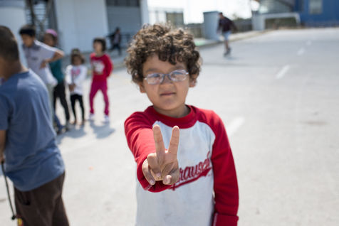 Au bout d'une ligne de métro, et après un bon quart d'heure de marche, le camp du Pirée s'étend près des entrepôts du port. Sa taille a réduit depuis la dernière fois que les expatriés de Solidarités International sont venus, les autorités tentent de faire place nette avant les arrivées de touristes paraît-il. Car juste à côté, les paquebots vont et viennent, embarquant et débarquant les touristes vers les îles. Dans ce camp informel, des volontaires distribuent des vêtements pour enfants, de la nourriture, des couvertures, ils proposent aux enfants quelques jeux pour oublier leur nouveau quotidien, de quoi survivre dans ces conditions de vie précaires. Peut-être est-ce ce qui leur permet de continuer à sourire, comme Isna, jeune afghane de 9 ans, Naïm avec son ballon, ou la petite irakienne de 4 ans avec sa tétine dans la bouche.