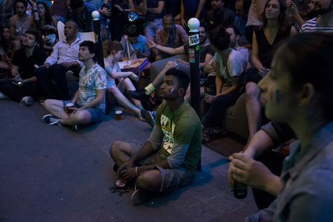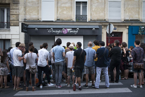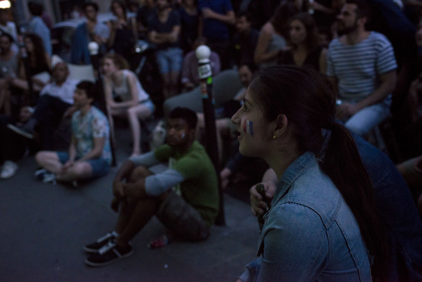 Finale de l'Euro dans la rue Ramey dans le 18e arrondissement de Paris. Des commerçants ont installé un écran sur le trottoir. De nombreux riverains se sont retrouvés pour ce match décisif entre la France et le Portugal. Finalement le Portugal gagnera 1-0 pendant les prolongations.