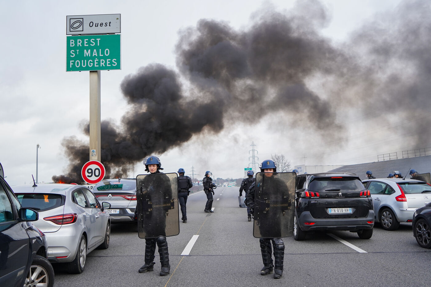 Rennes, dead city operation. In response to the use of article 49.3 for the forced passage of the pension reform, multiple economic blockades were organized this Monday, March 20, to stop the traffic of the main transport axes of the city.