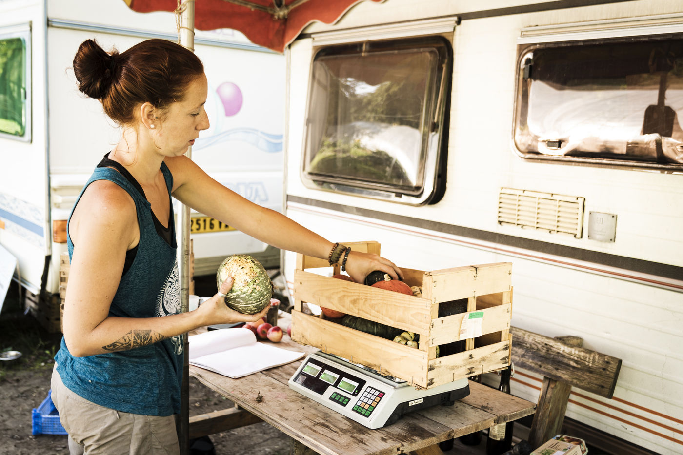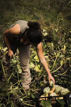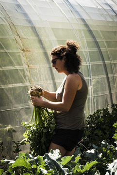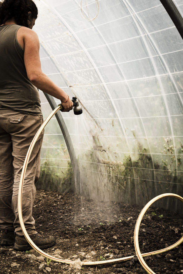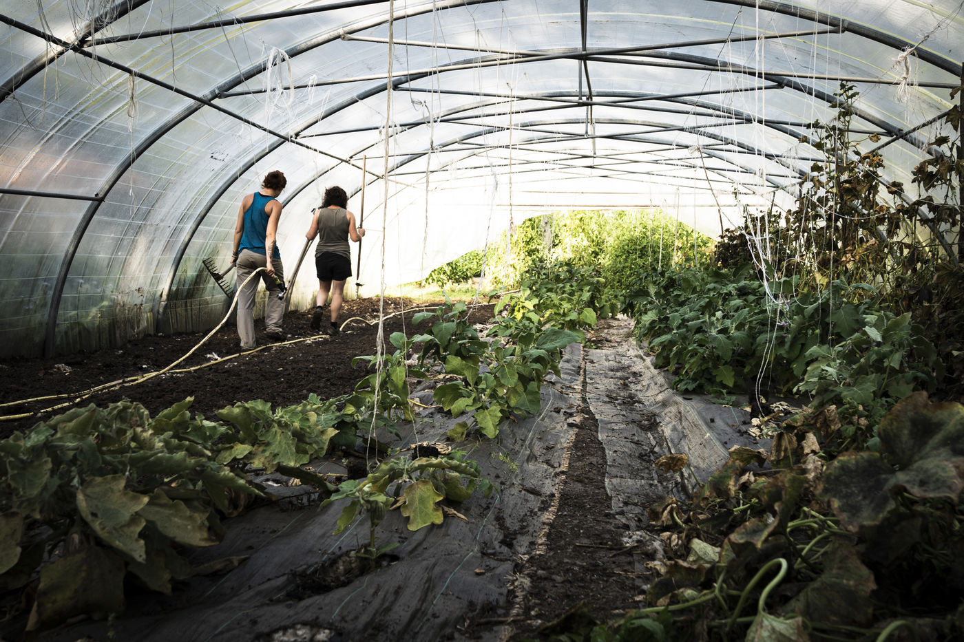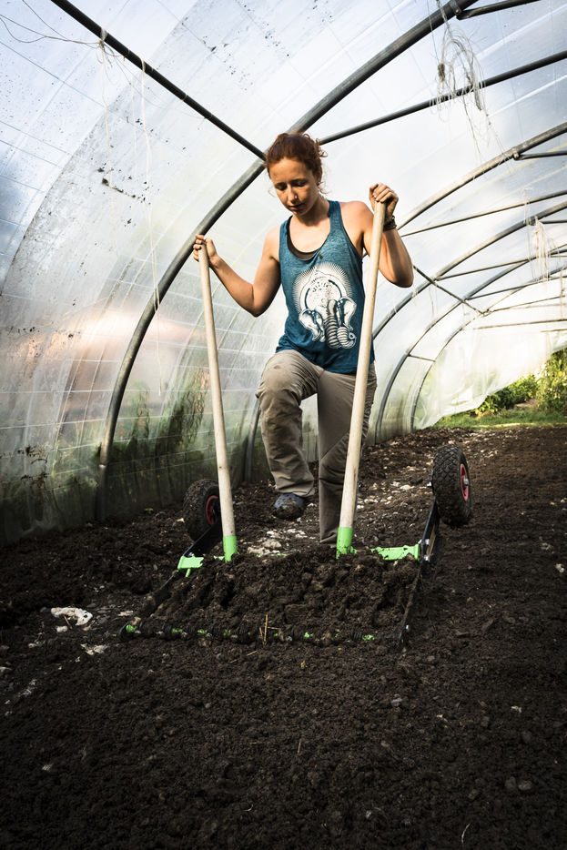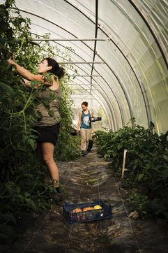 Elodie, en reconversion professionnelle a rejoint Audrey cet été. Toutes deux partagent la même vision : travailler la terre avec ce qu'elle offre, dans le respect de la nature.