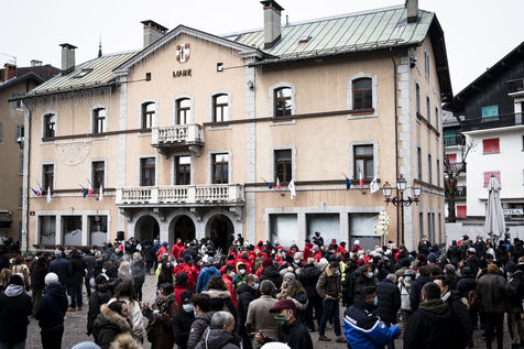 Monday, November 30, 2020, elected at the town hall, ski instructors, shopkeepers, restaurateurs and seasonal workers from Megève and the surrounding communes gathered in the town hall square. They denounced the decision to open the ski resorts during the Christmas vacations, but without the ski lifts.