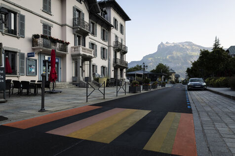 Ville thermale et nombreuses activités de montagne font de la ville de Saint-Gervais-Les-Bains une destination touristique incontournable en Haute-Savoie. Son centre ville s'est paré début 2023 de passages piétons colorés.