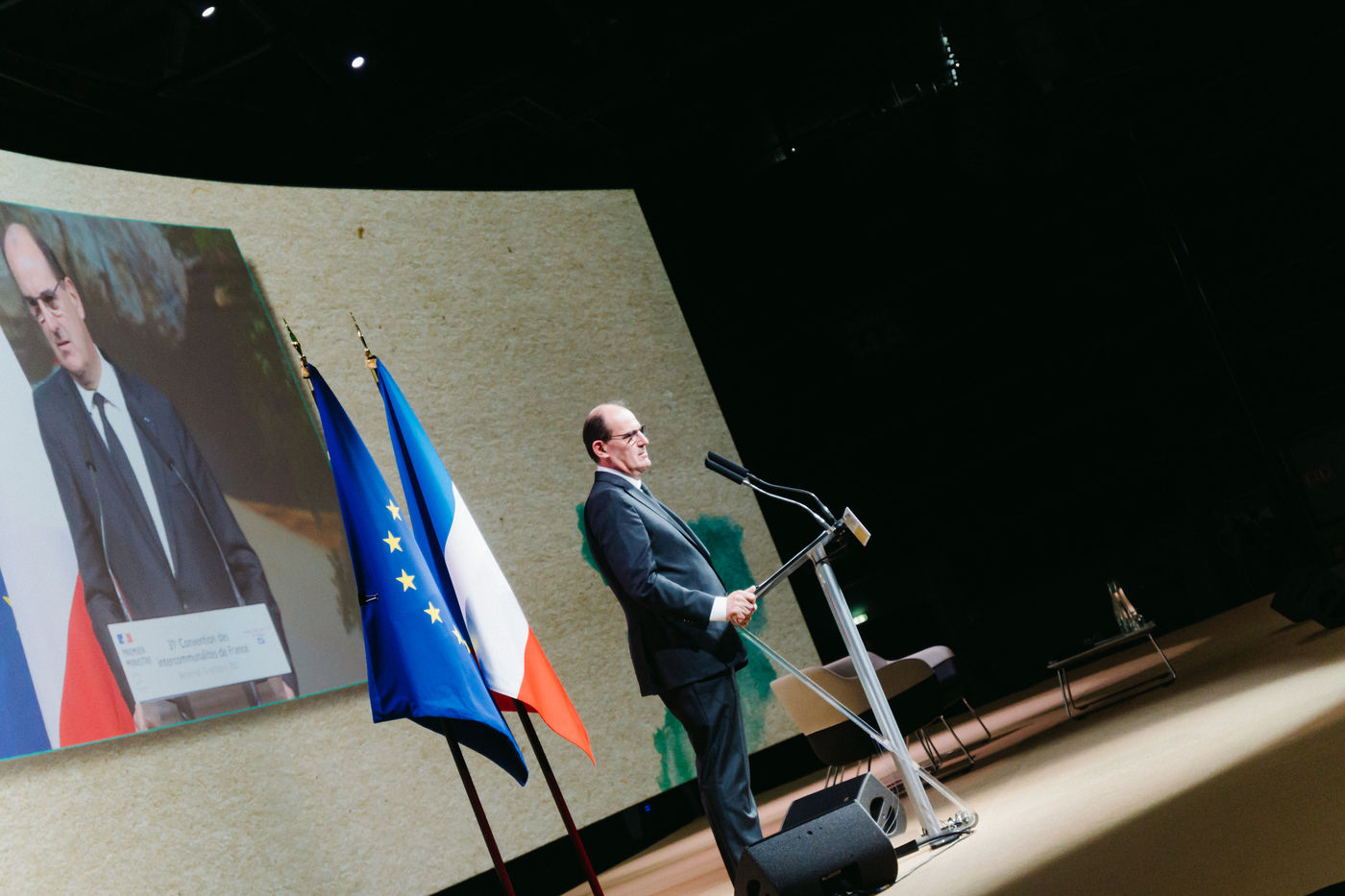 French Prime Minister Jean Castex visited the 31st national convention of the AdCF this morning, October 15. He gave a speech and spoke with the mayor of Clermont-Ferrand, Olivier Bianchi.