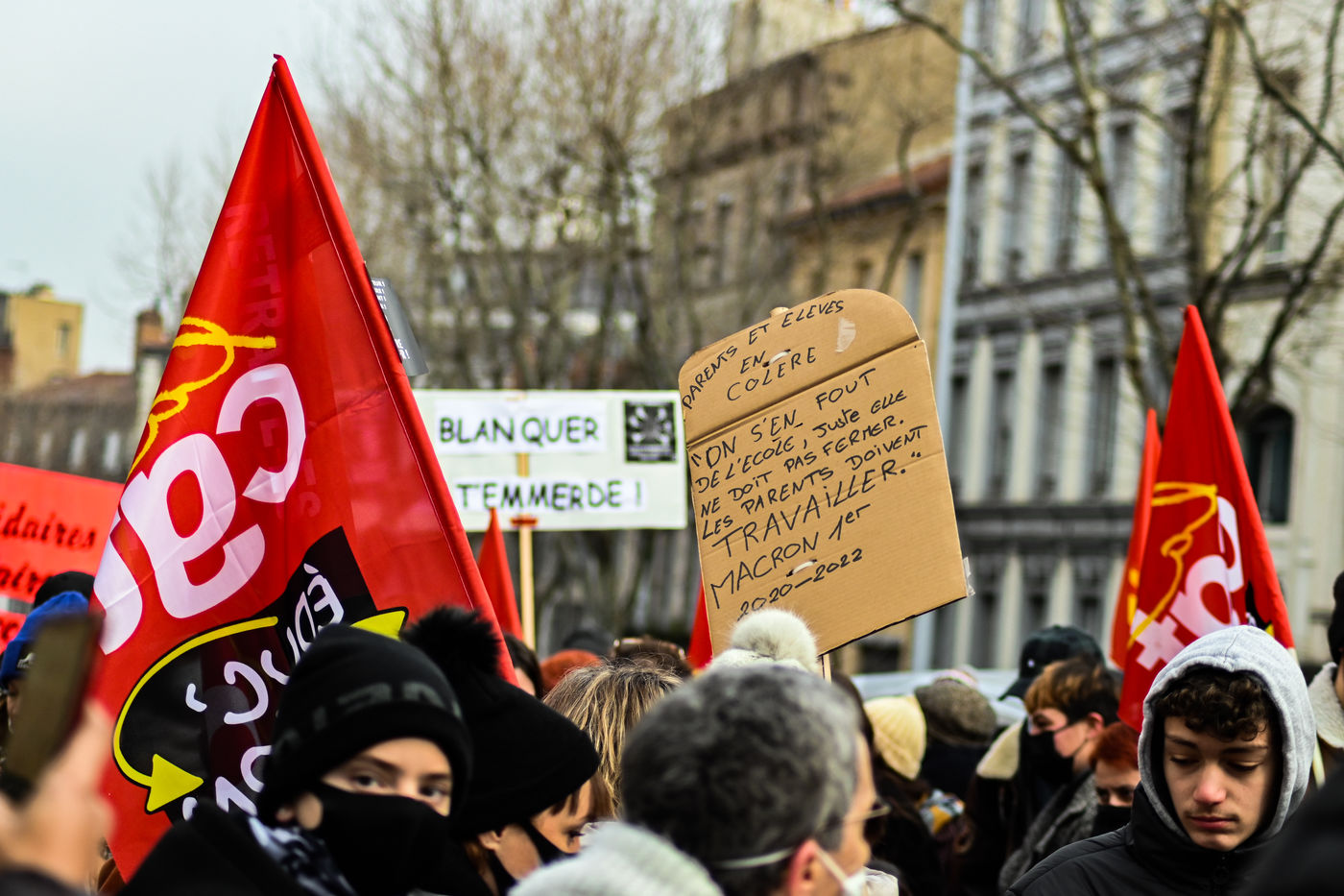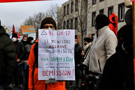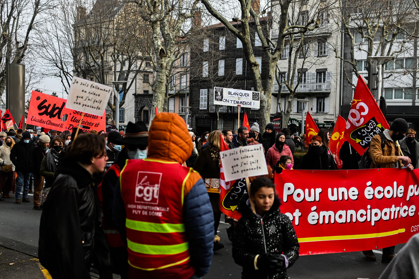 Alors que ce jeudi 13 janvier le pays fait face à une grève massive à l'école, plusieurs manifestations, à l'appel de syndicats, ont lieu dans le pays. Ici, à Clermont-Ferrand, où un millier de personnes ont protesté.
