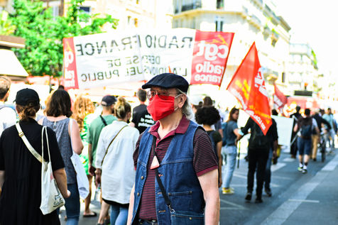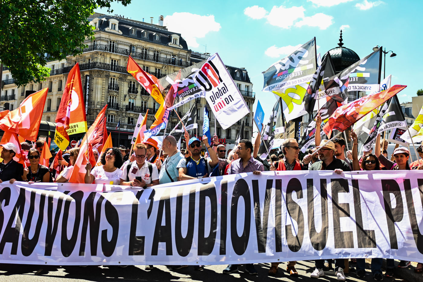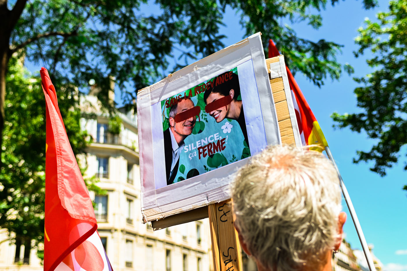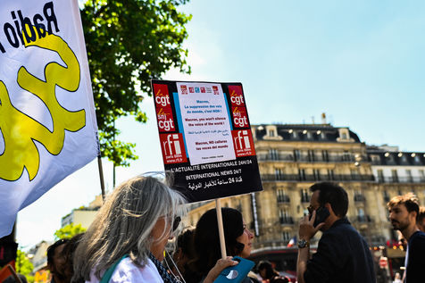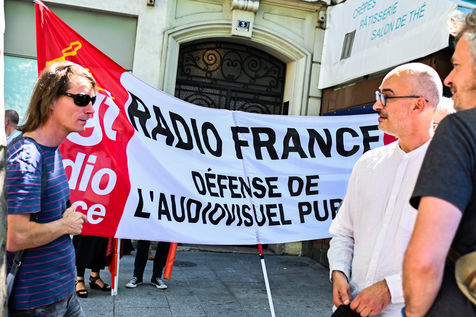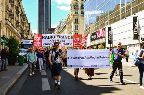 Strike and demonstration of the employees of Radio France and France Televisions against the end of the audiovisual license fee. The programs on the radio and TV were therefore disturbed.
