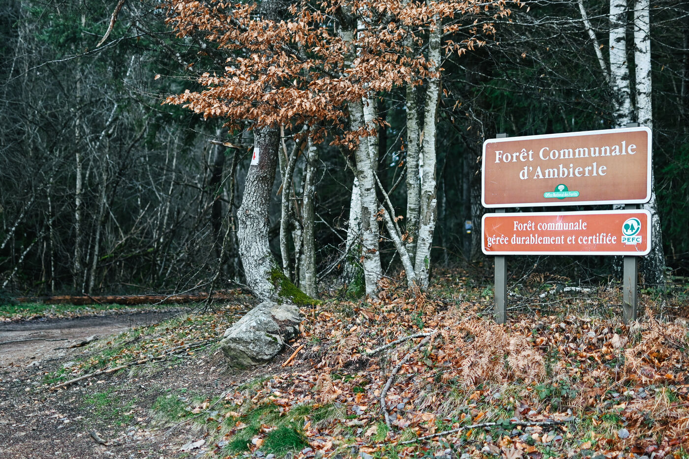 France, Ambierle, 2023-01-14. Certains habitants de la commune d Ambierle, dans le departement de la Loire, ont cree un collectif nomme Touche pas a ma foret. En reaction au projet de vente de la foret communale envisage par la mairie. Photographie par Adrien Fillon / Hans Lucas.