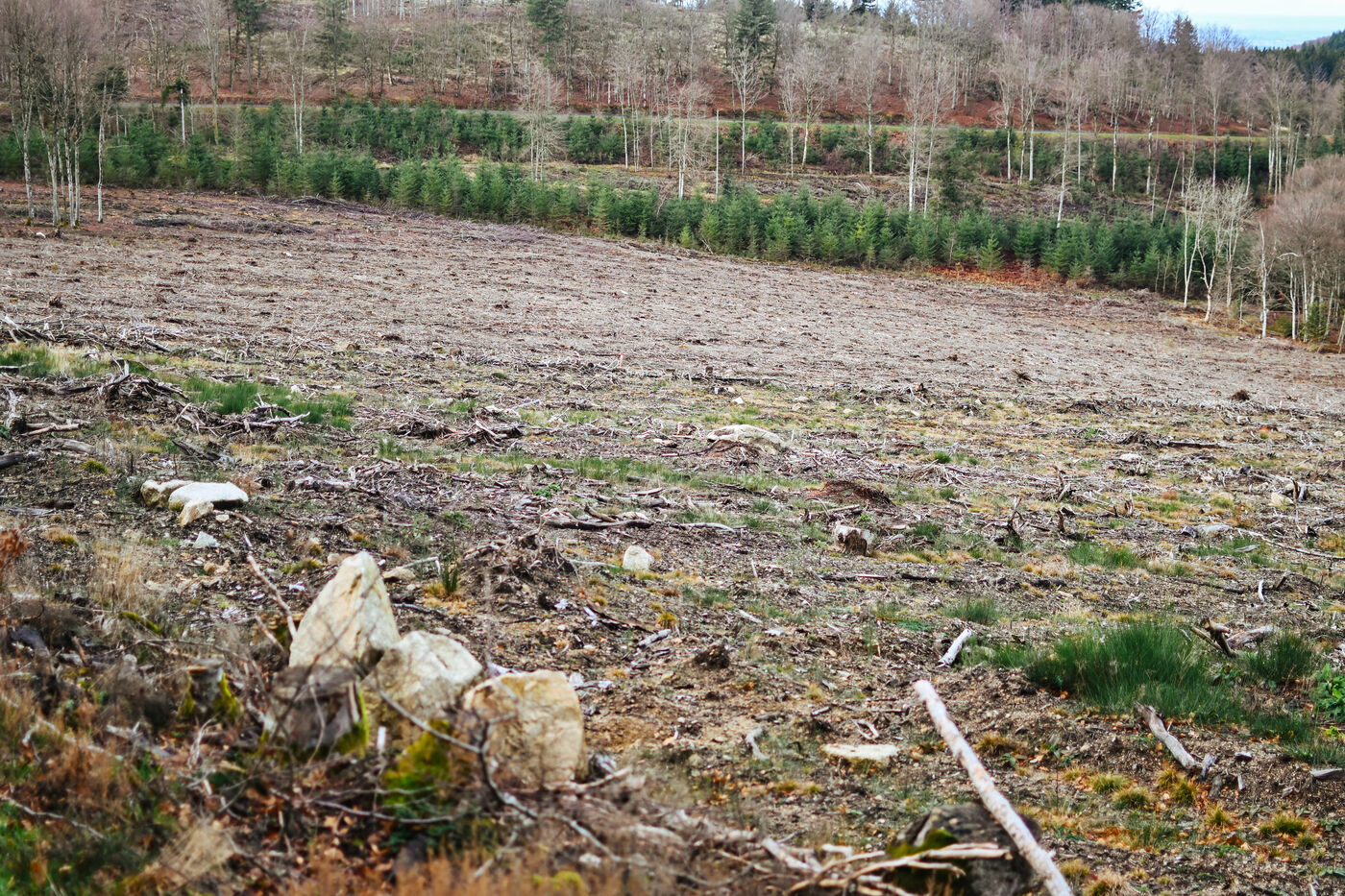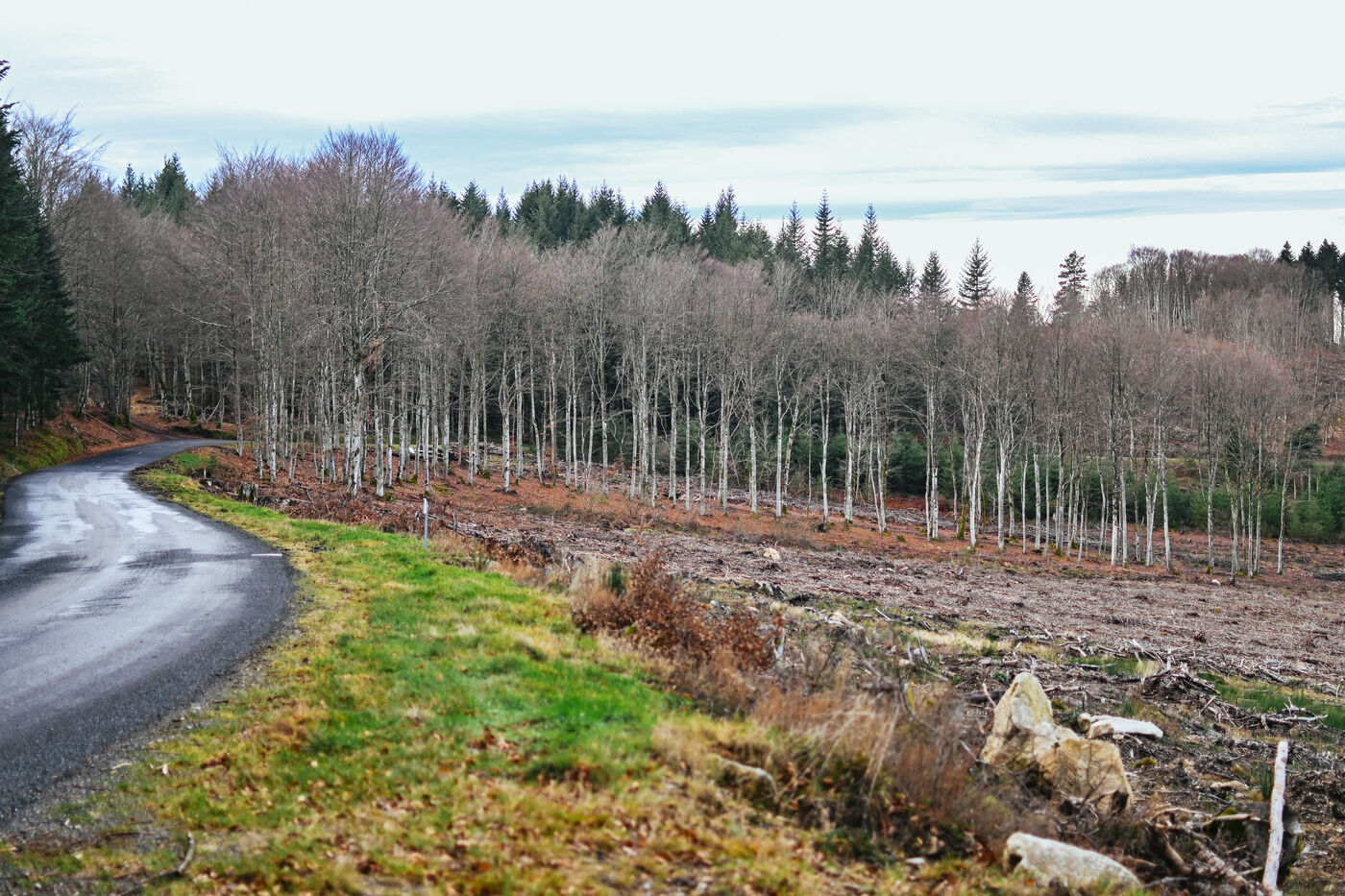 France, Ambierle, 2032-01-14. Some inhabitants of the commune of Ambierle, in the department of the Loire, created a collective named Touche pas a ma foret. In reaction to the project of sale of the communal forest envisaged by the town hall. Photograph by Adrien Fillon / Hans Lucas.