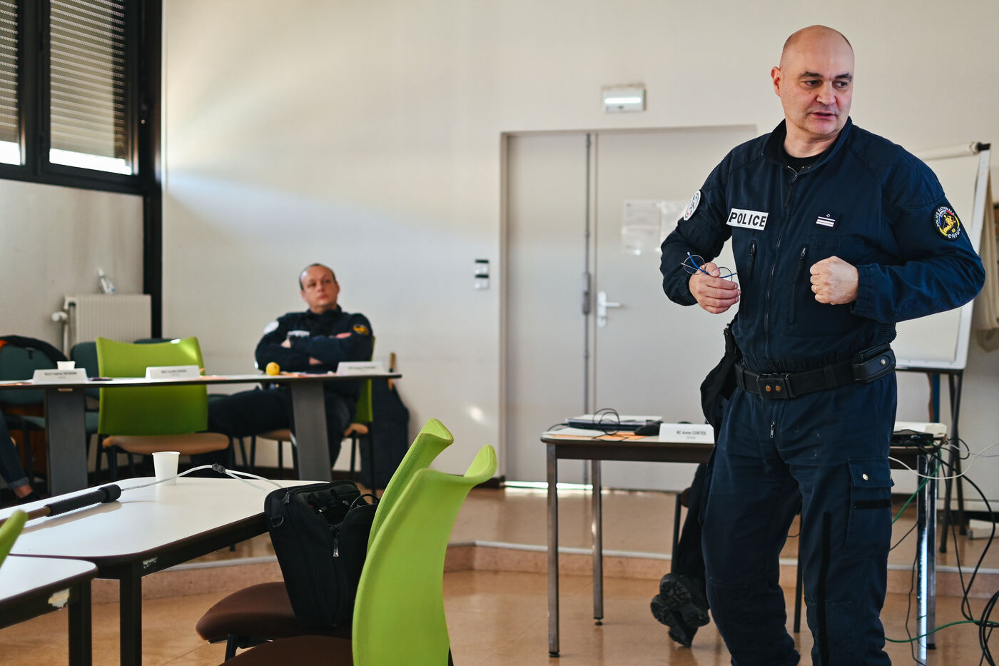 France, Clermont-Ferrand, 2023-02-16. Lancement a Clermont-Ferrand de la formation des policiers a la detection et au traitement de la maltraitance animale, annoncee par le ministre de l Interieur Gerald Darmanin en janvier dernier. Photographie par Adrien Fillon / Hans Lucas.