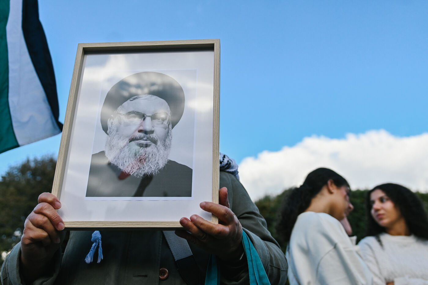 France, Lille, 2024-09-28. A few hundred people gathered on the Place de la République in Lille on Saturday, September 28 to call for a ceasefire in Lebanon, while the country has been bombarded by Israel for several days. Hezbollah confirmed on Saturday the death of its leader, Hassan Nasrallah, in an Israeli strike. Photography by Adrien Fillon / Hans Lucas.