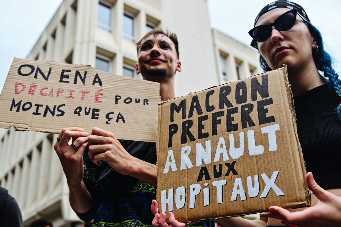 France, Lille, 2025-09-10. Demonstration in Lille, northern France, on September 10, 2025, as part of the Bloquons-tout ! (Let's block everything) nationwide protest movement. On this day, the anti-government campaign aims to bring the country to a standstill with a string of protest actions and civil disobedience, a day after French President Emmanuel Macron appointed the successor of former PM Francois Bayrou. Photograph by Adrien Fillon / Hans Lucas.
