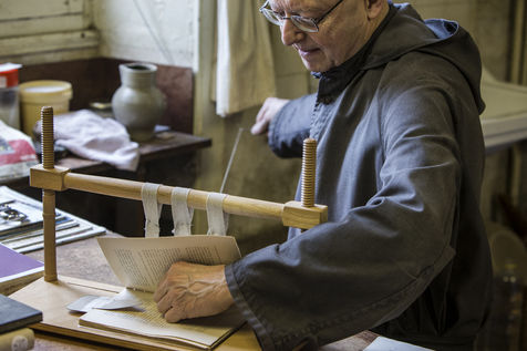 L'abbaye de Solesmes est aussi une maison d'édition. Les moines y réalisent encore des ouvrages reliés à la main.