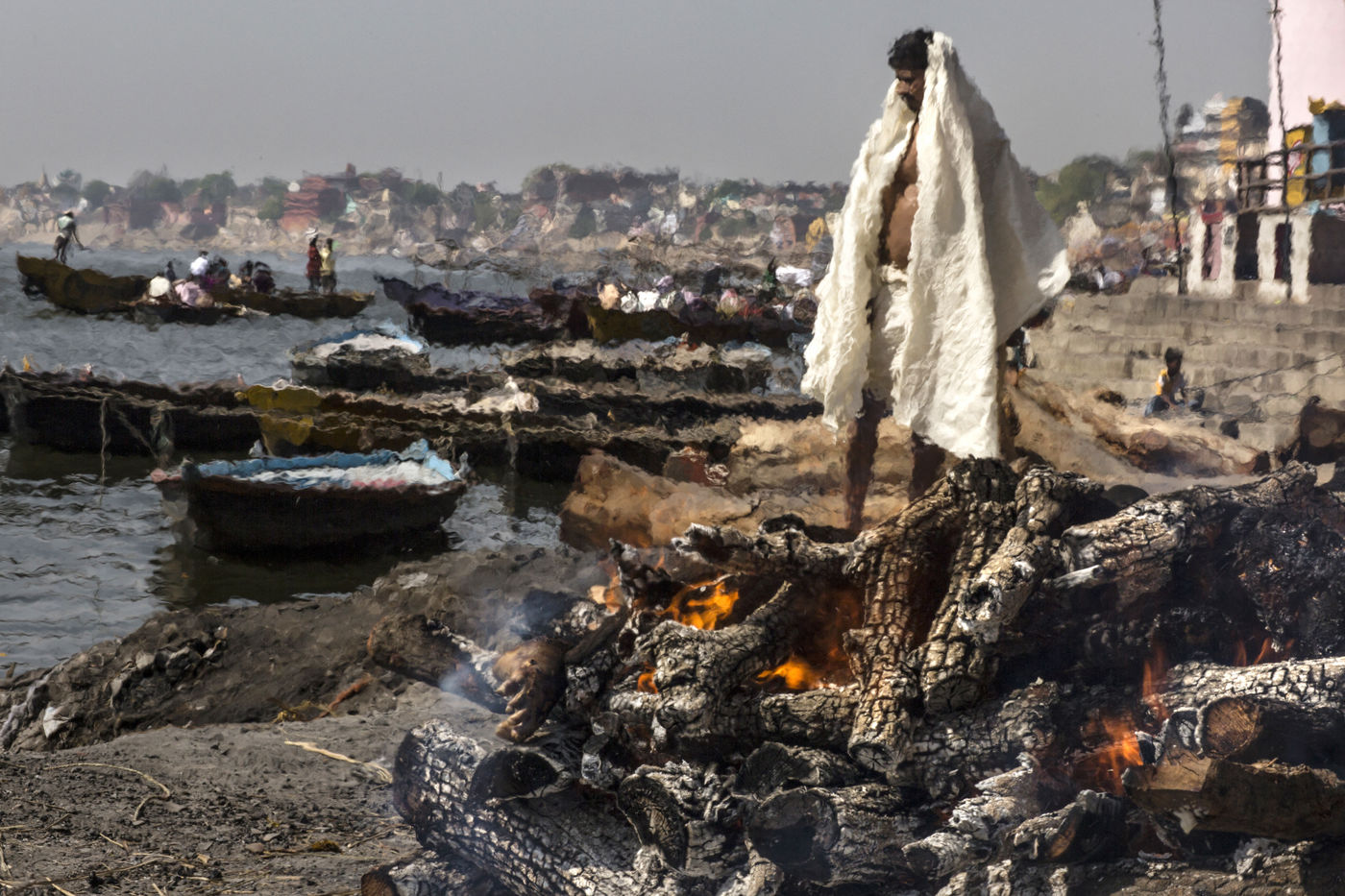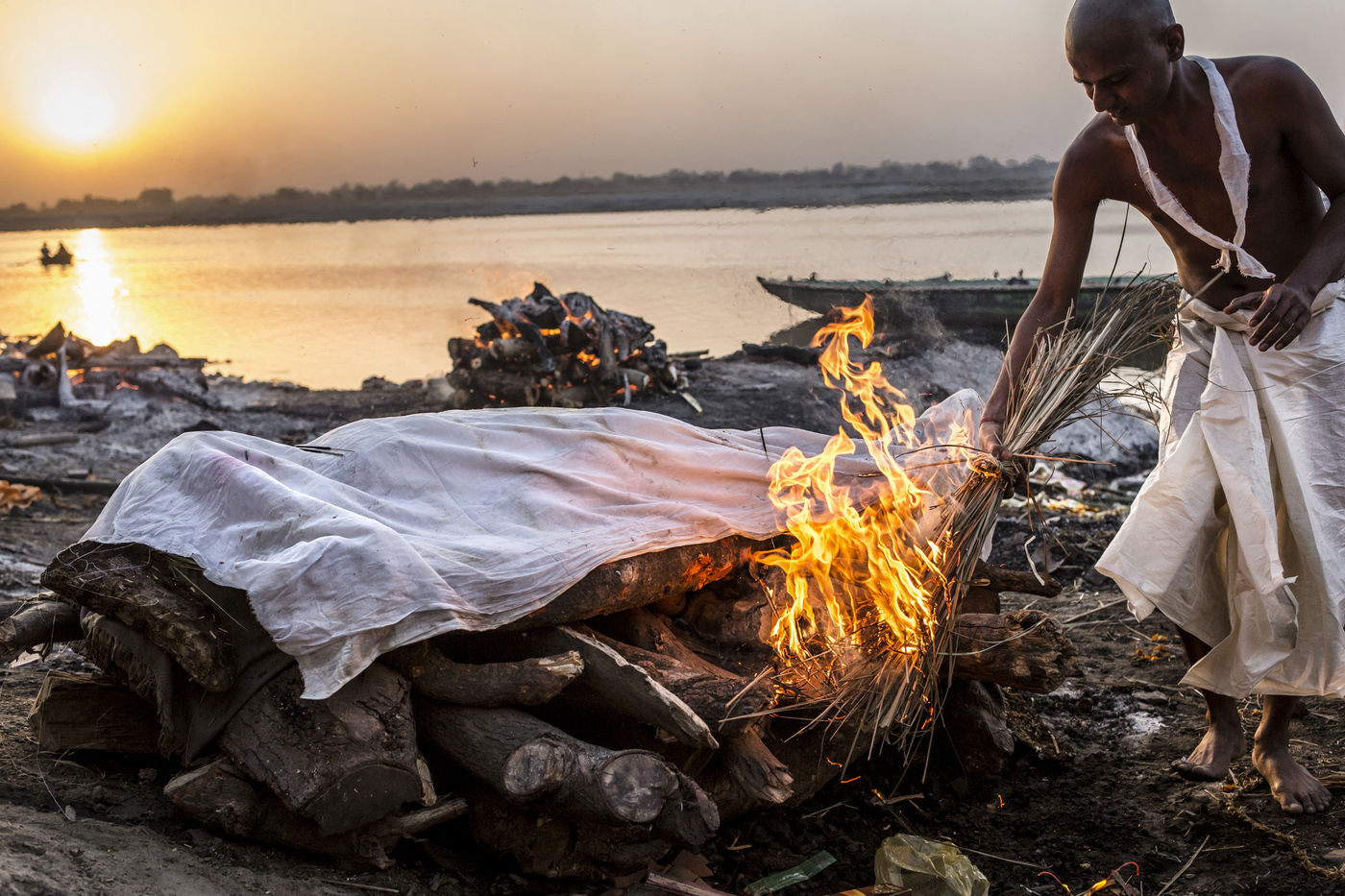 Dans la croyance hindoue, venir mourir à Varanasi permet de mettre fin au cycle des réincarnations (le Samsara) et d'atteindre le Moksha l'équivalent du Nirvana. Sur le ghat de Manikarnika, sur les rives du Gange, plus d'une centaine de crémations ont lieu chaque jour, un rituel immuable organisé par les Doms, une caste d'intouchables qui a fait de cette activité un véritable business.